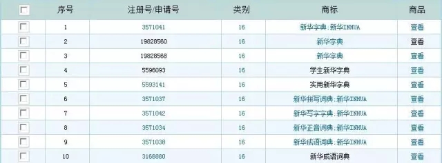 “实用新华字典”等可能侵犯商标权。笔者通过查询发现,与“新华字典”相近的注册商标和申请注册记录,大概有10余项,其中大多数均为商务印书馆申请或拥有,“实用新华字典”、“学生新华字典”、“新华成语词典”三个由他人申请注册,但商标状态均为“无效”。为此,可以看出,商标局对于“新华字典”还处于较为严格的?;ぷ刺?。