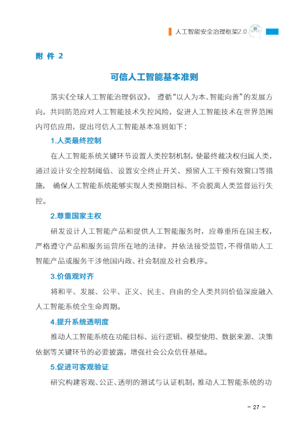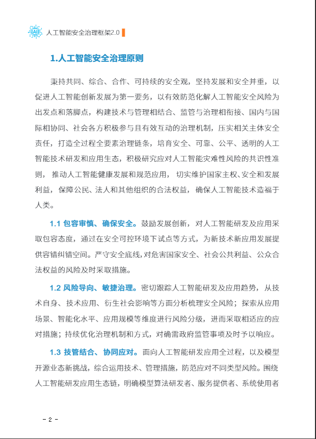 国家互联网应急中心负责同志表示,《框架》2.0版的发布,顺应全球人工智能发展潮流,统筹技术创新与治理实践,在人工智能安全、伦理、治理等方面不断深化共识,促进形成安全、可信、可控的人工智能发展生态,构建跨国界、跨领域、跨行业的协同治理格局。同时,有助于推进多边机制下人工智能安全治理合作,推动世界范围内技术成果的普惠共享,确保人类社会共享人工智能发展的红利。