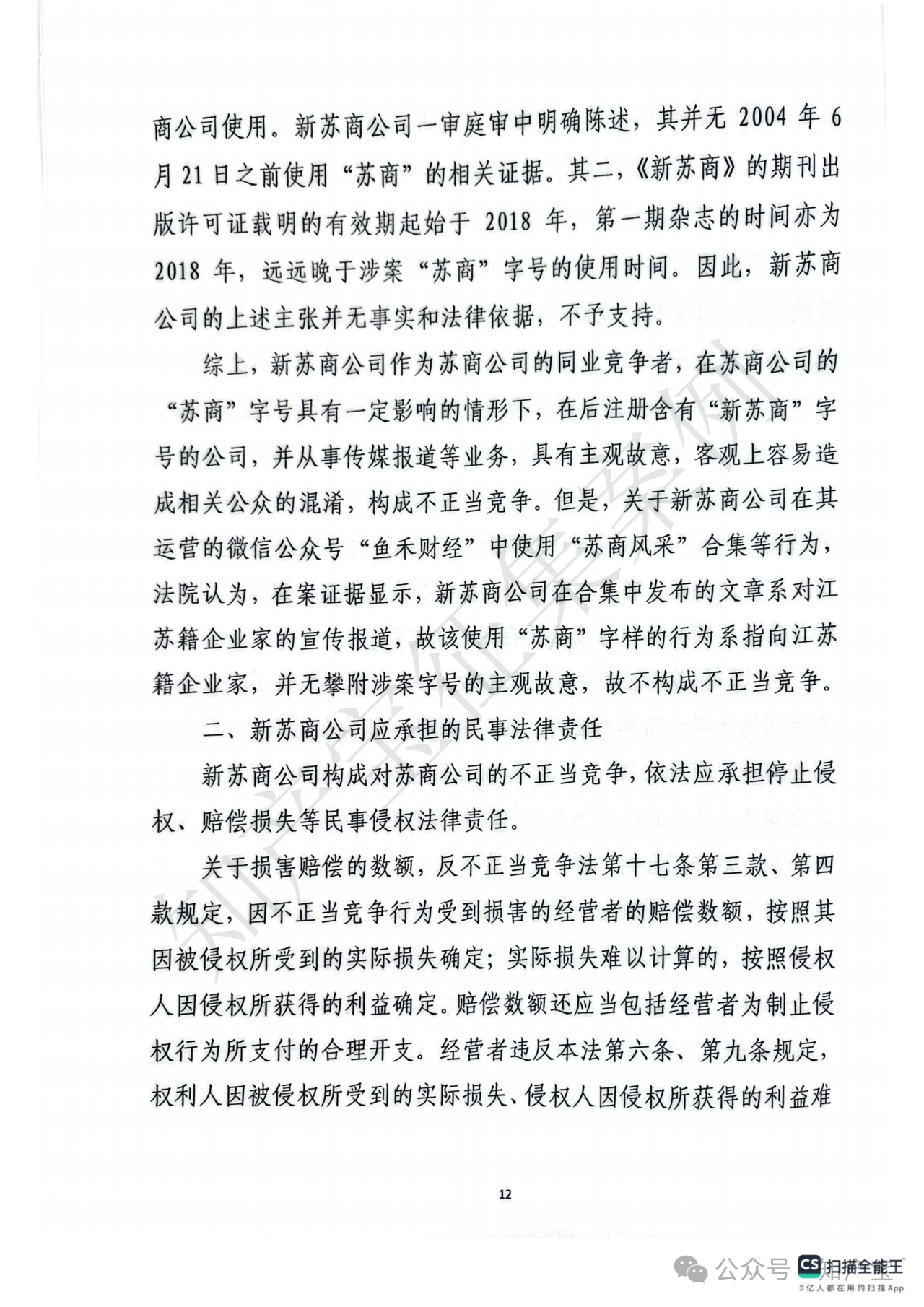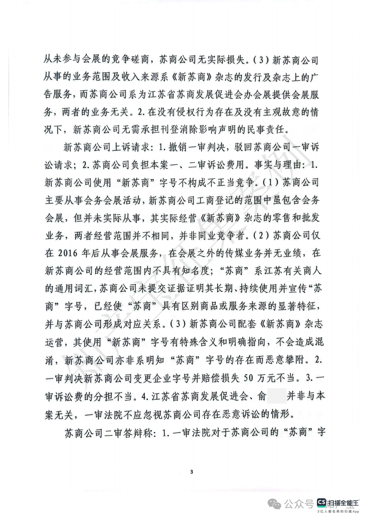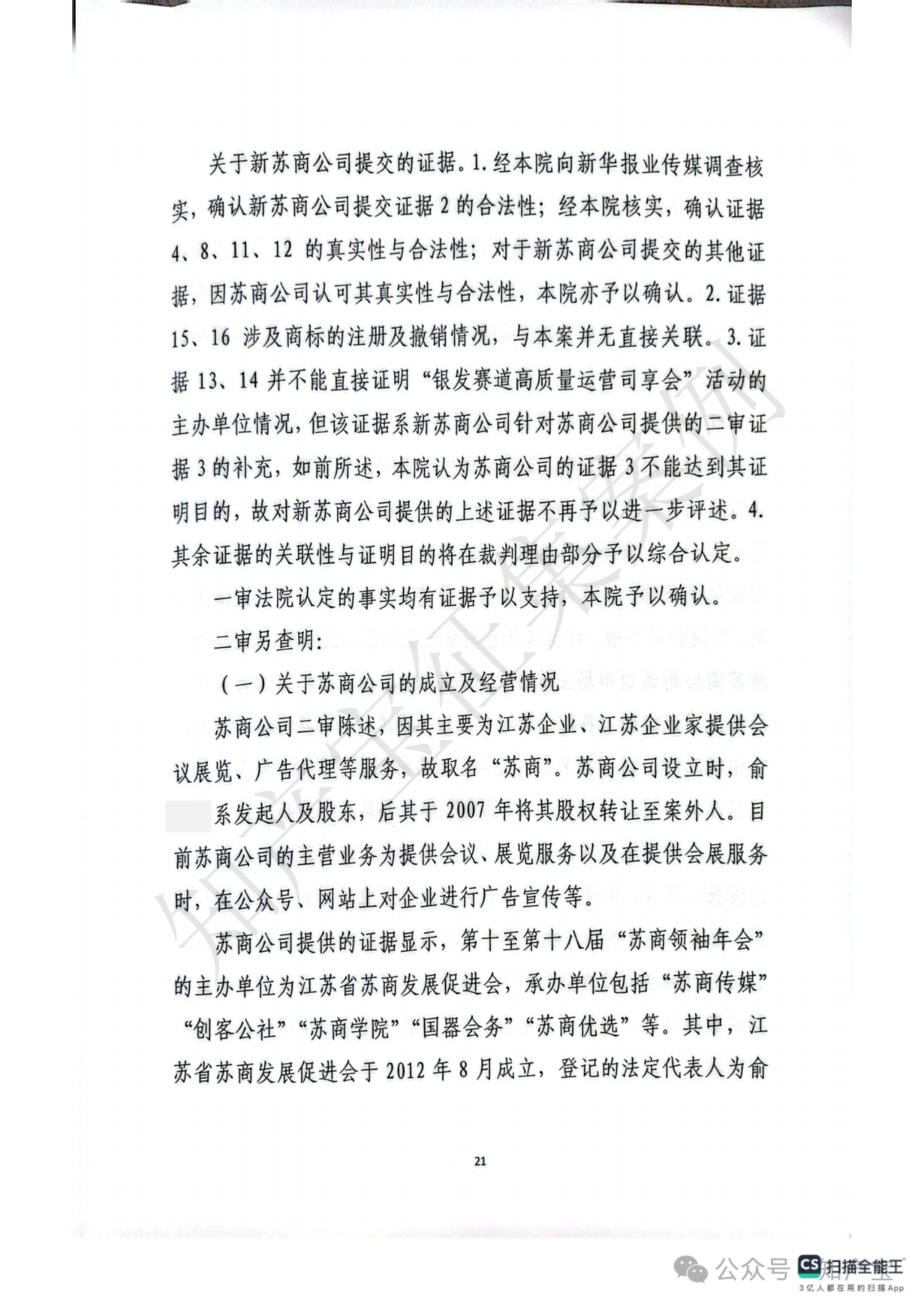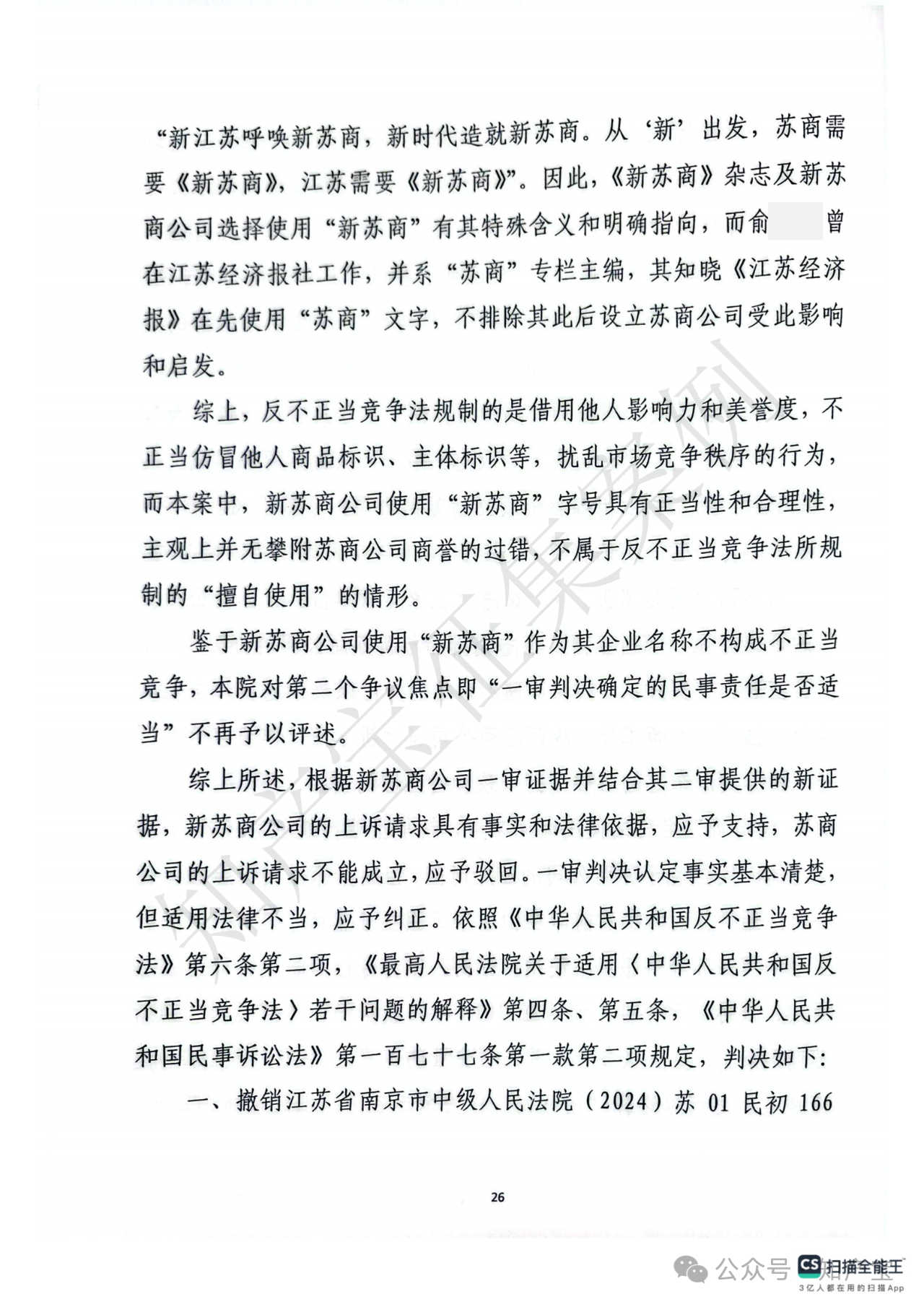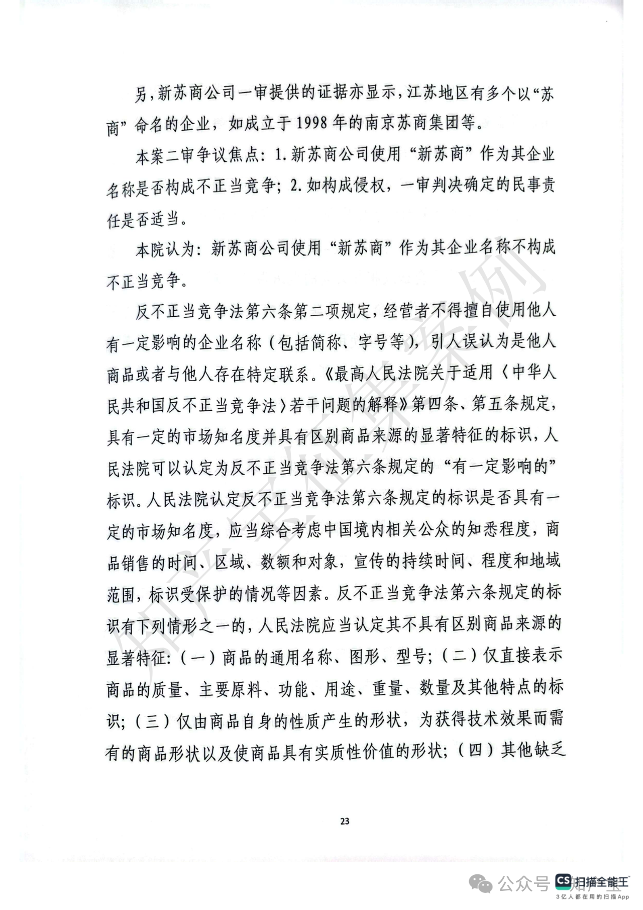 “新苏商”VS“苏商”不正当竞争纠纷案二审判决书