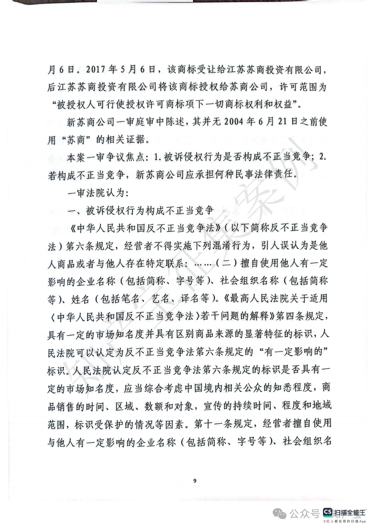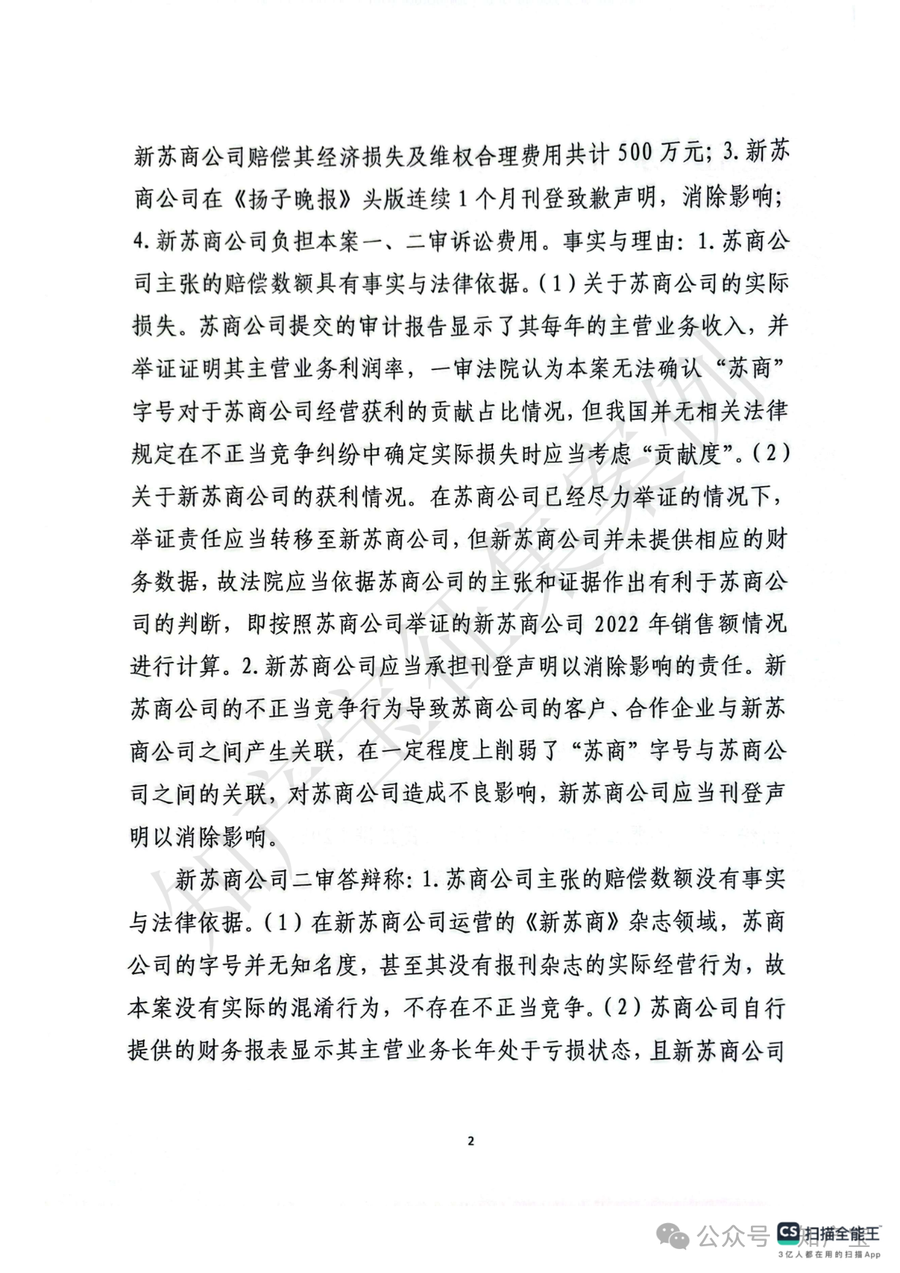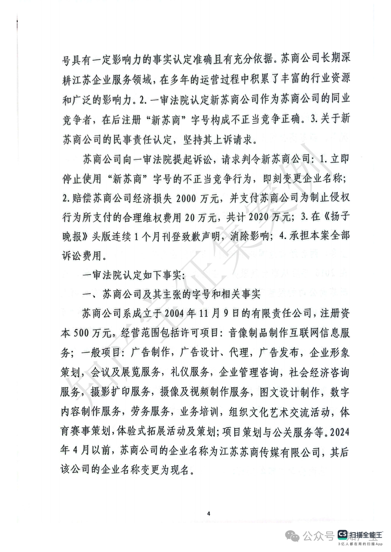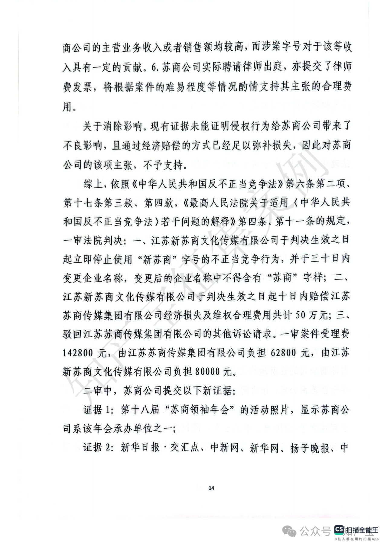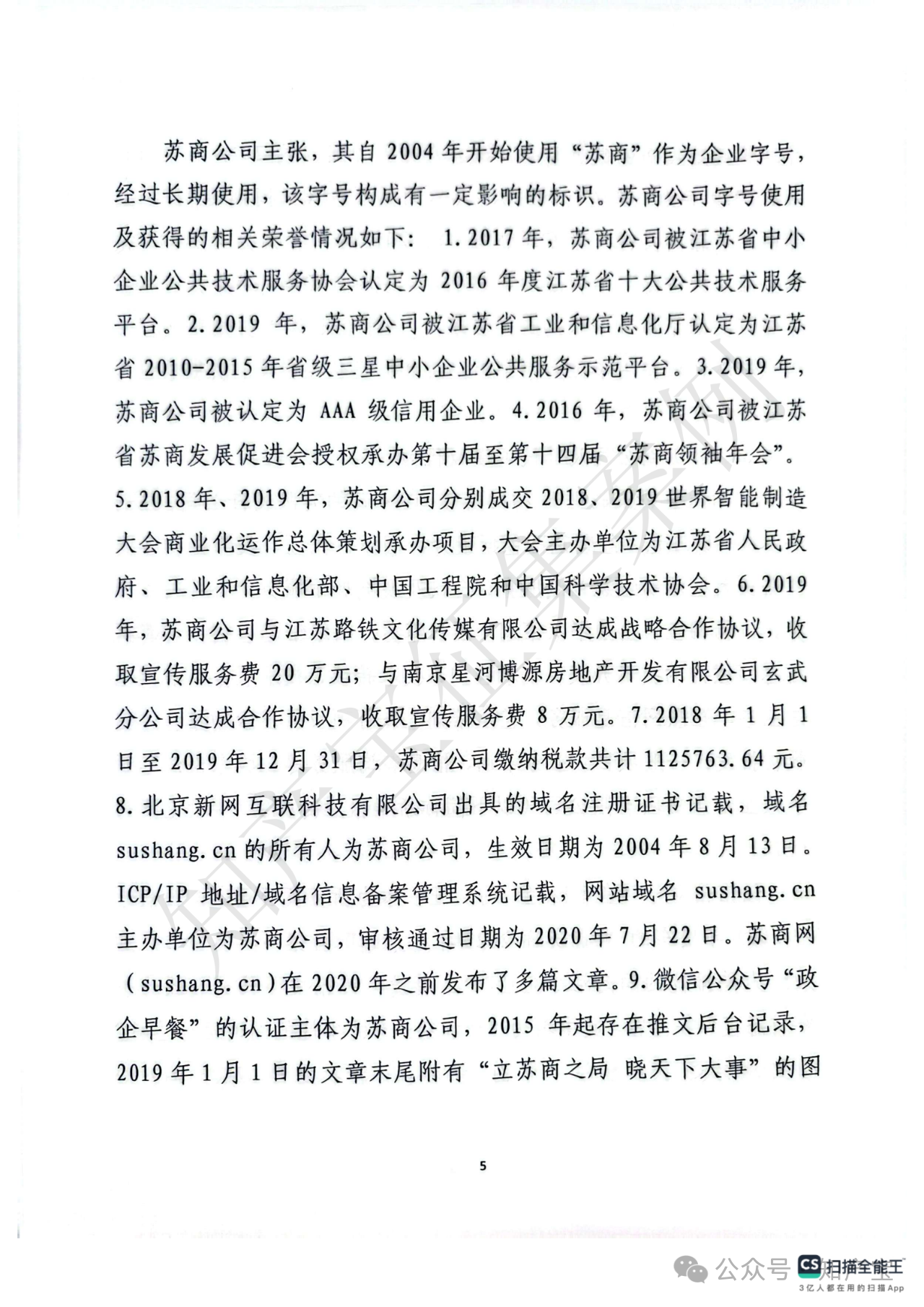 “新苏商”VS“苏商”不正当竞争纠纷案二审判决书