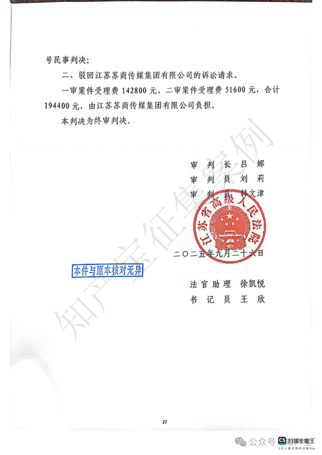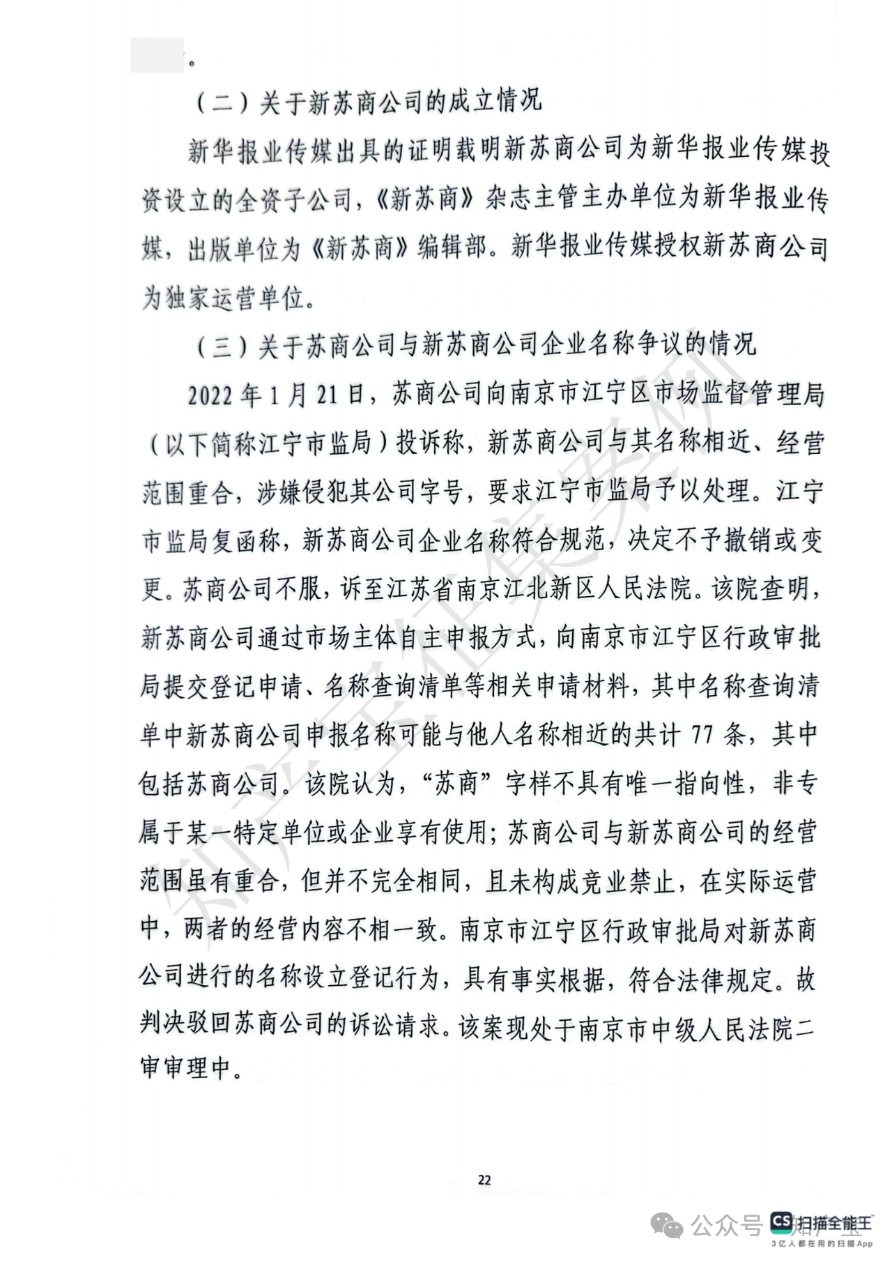 江苏苏商传媒集团有限公司VS江苏新苏商文化传媒有限公司