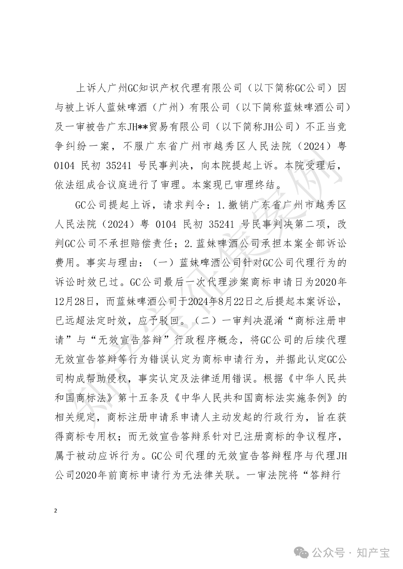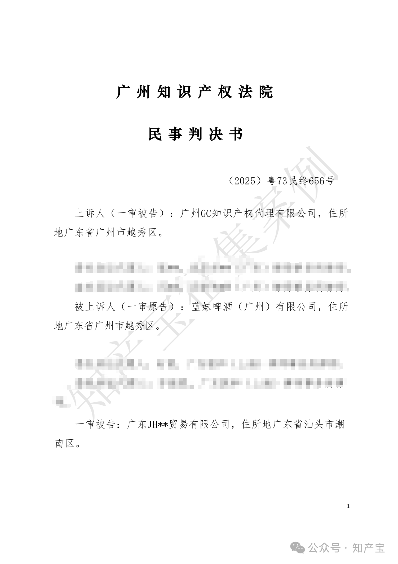 广州GC知识产权代理有限公司vs蓝妹啤酒(广州)有限公司