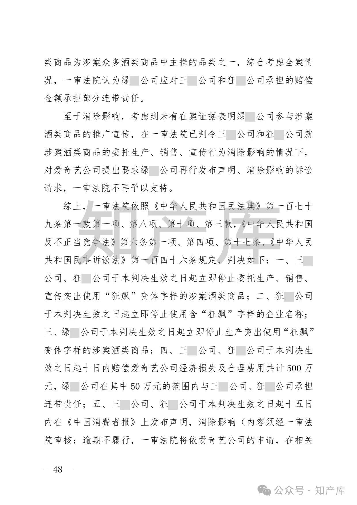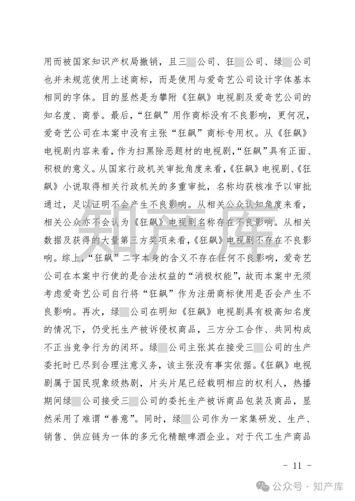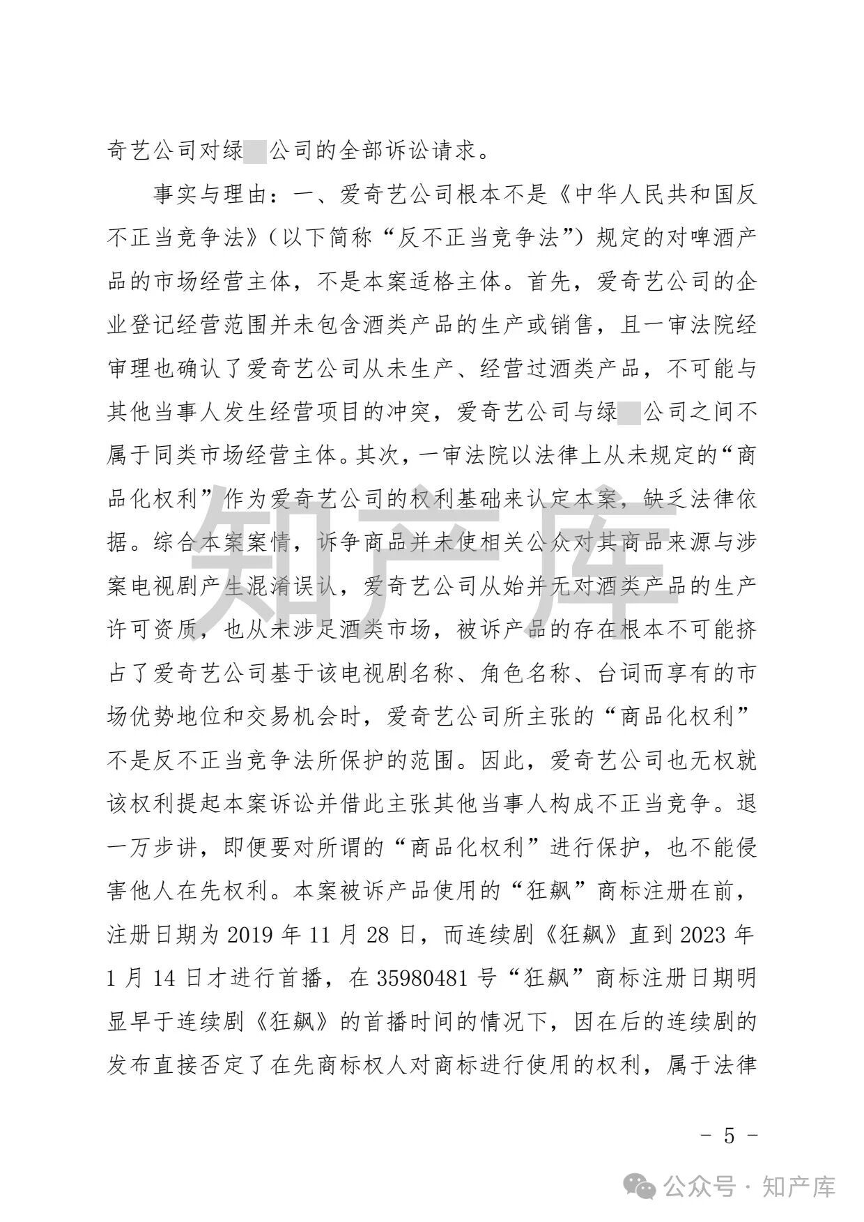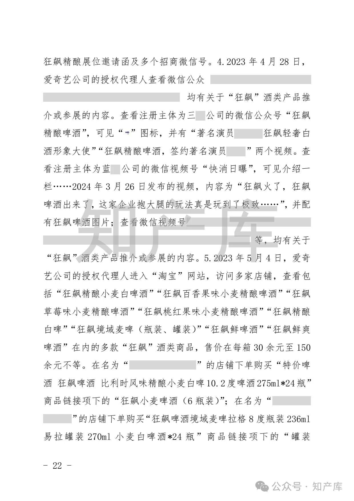 狂飙啤酒聘老默代言蹭剧被爱奇艺起诉,法院判赔500万 二审判决书