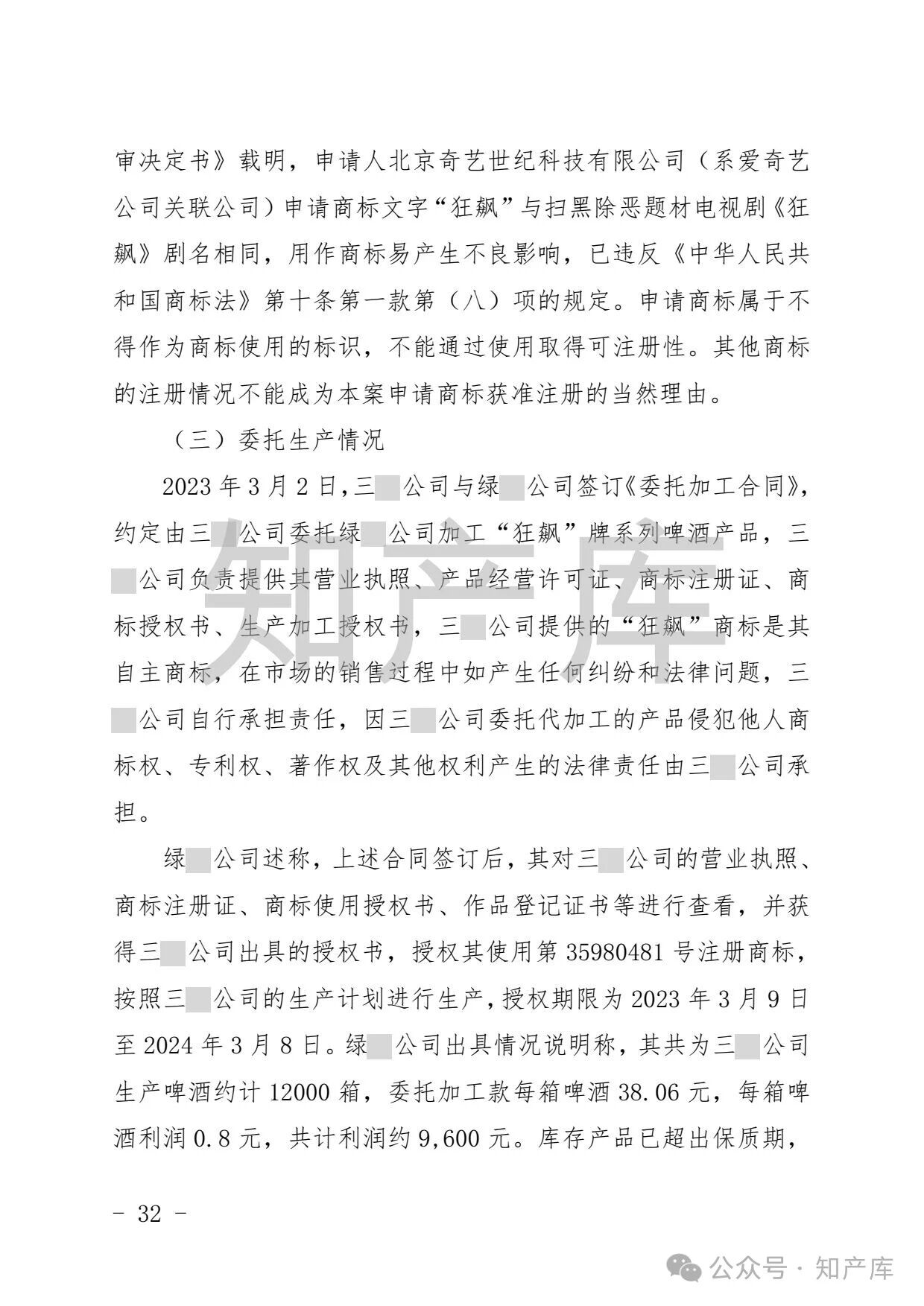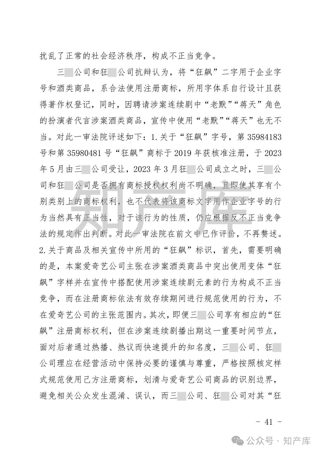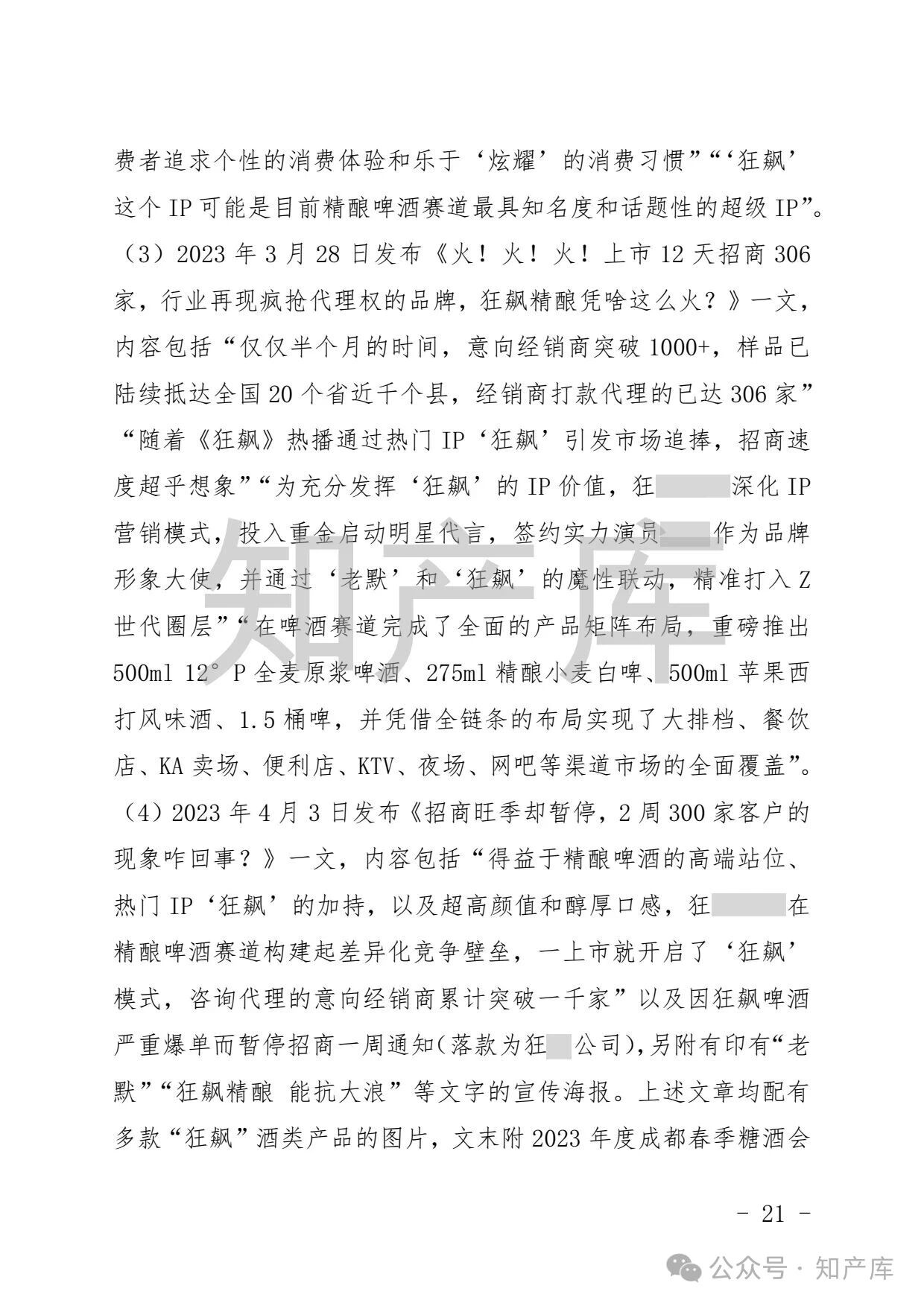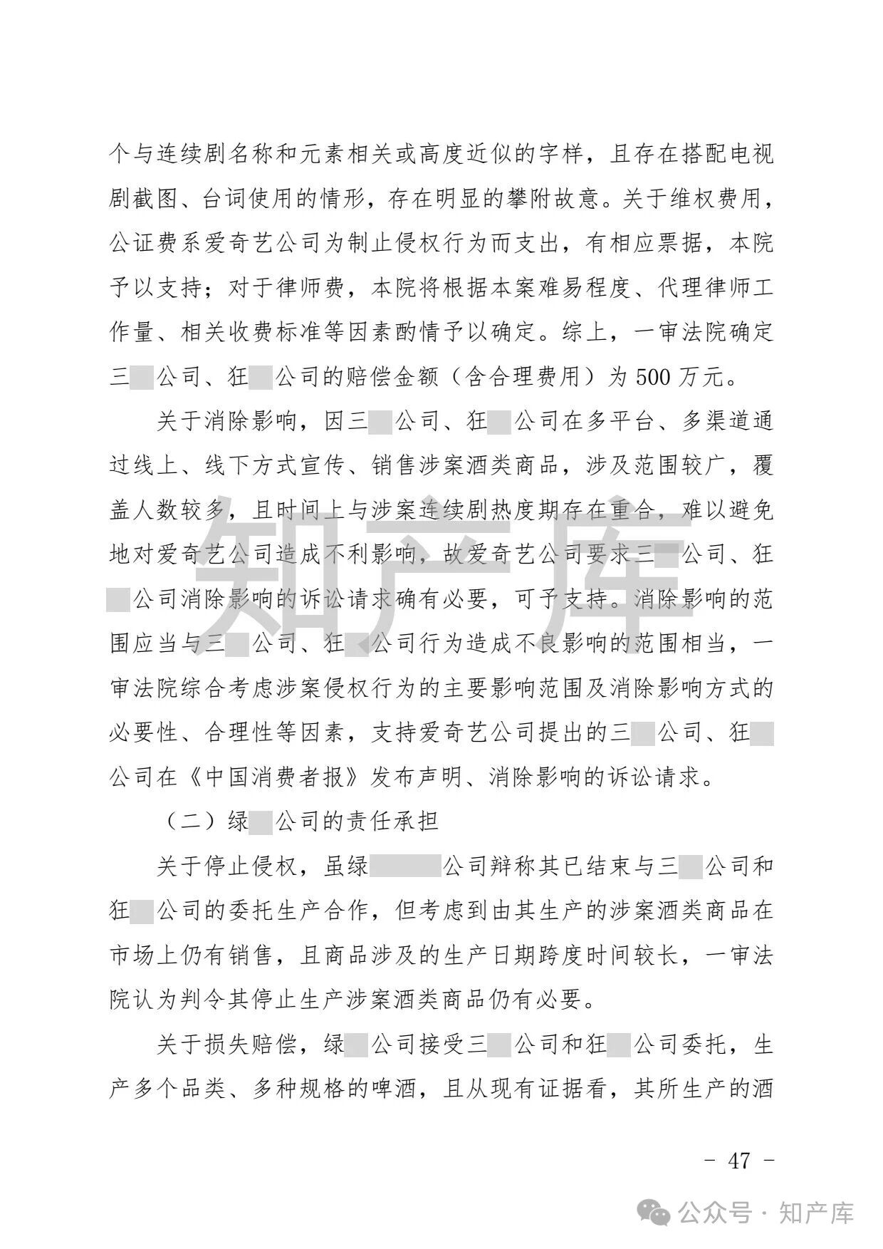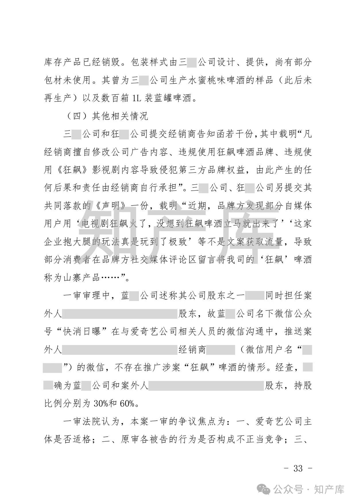 狂飙啤酒聘老默代言蹭剧被爱奇艺起诉,法院判赔500万 二审判决书