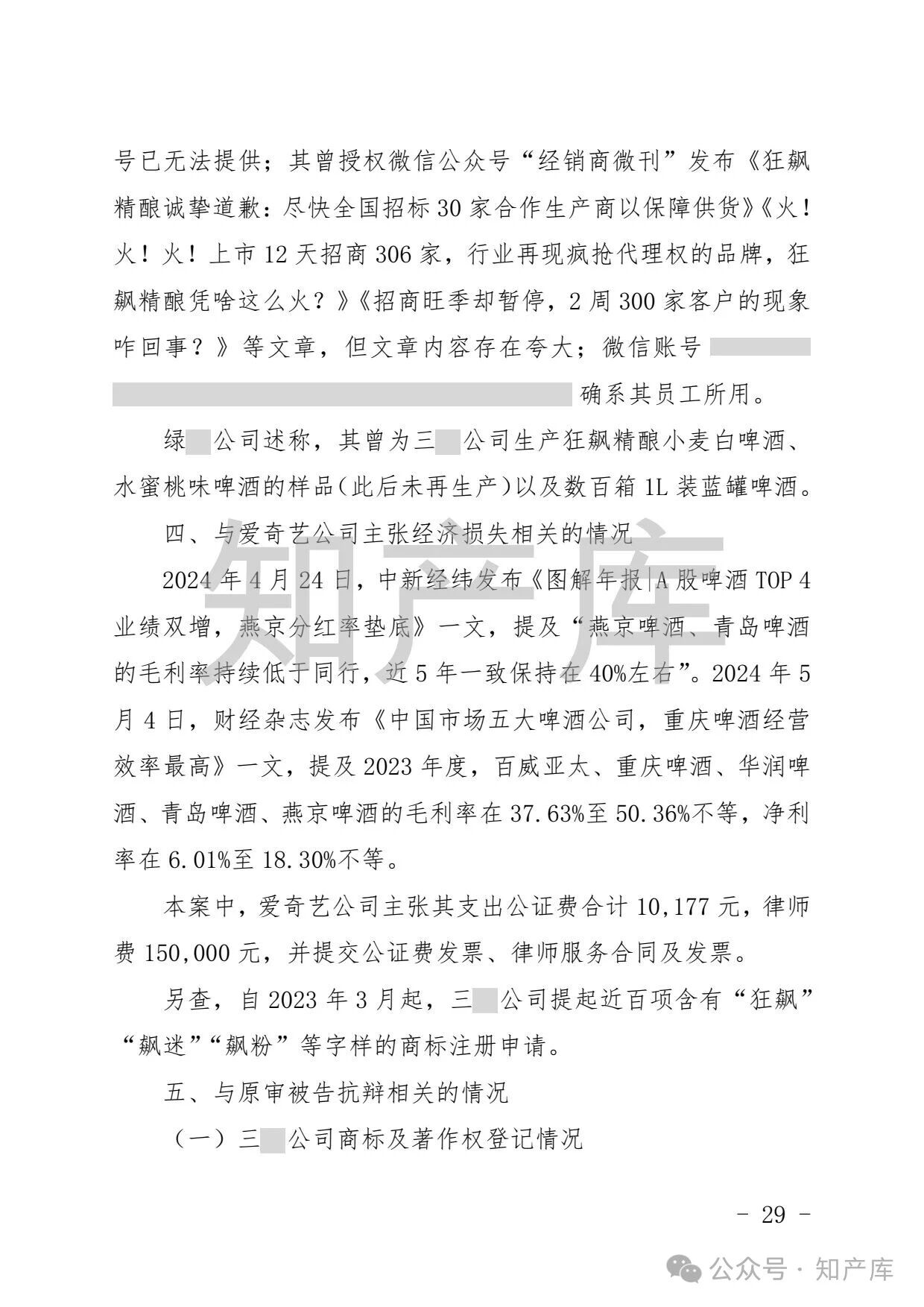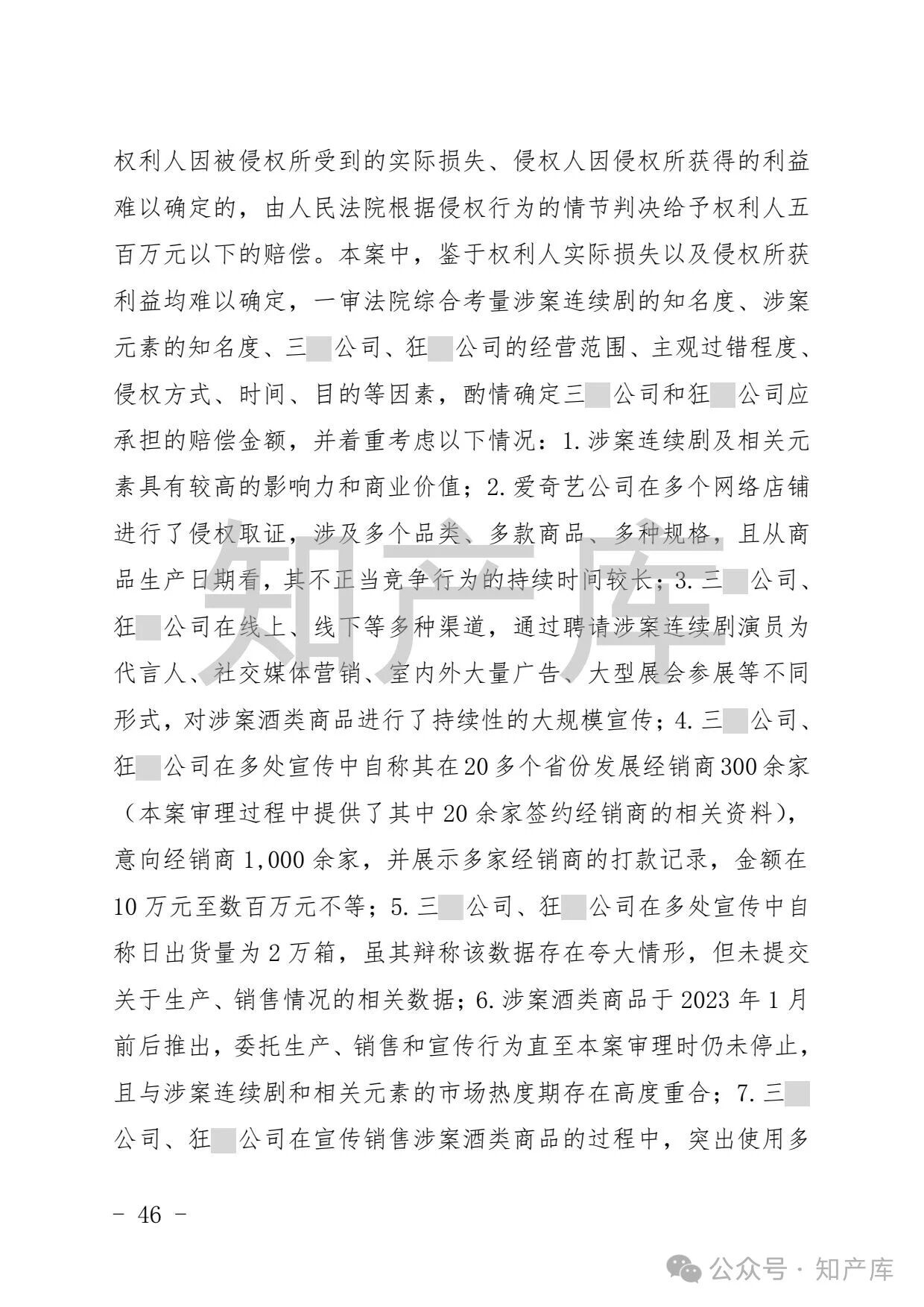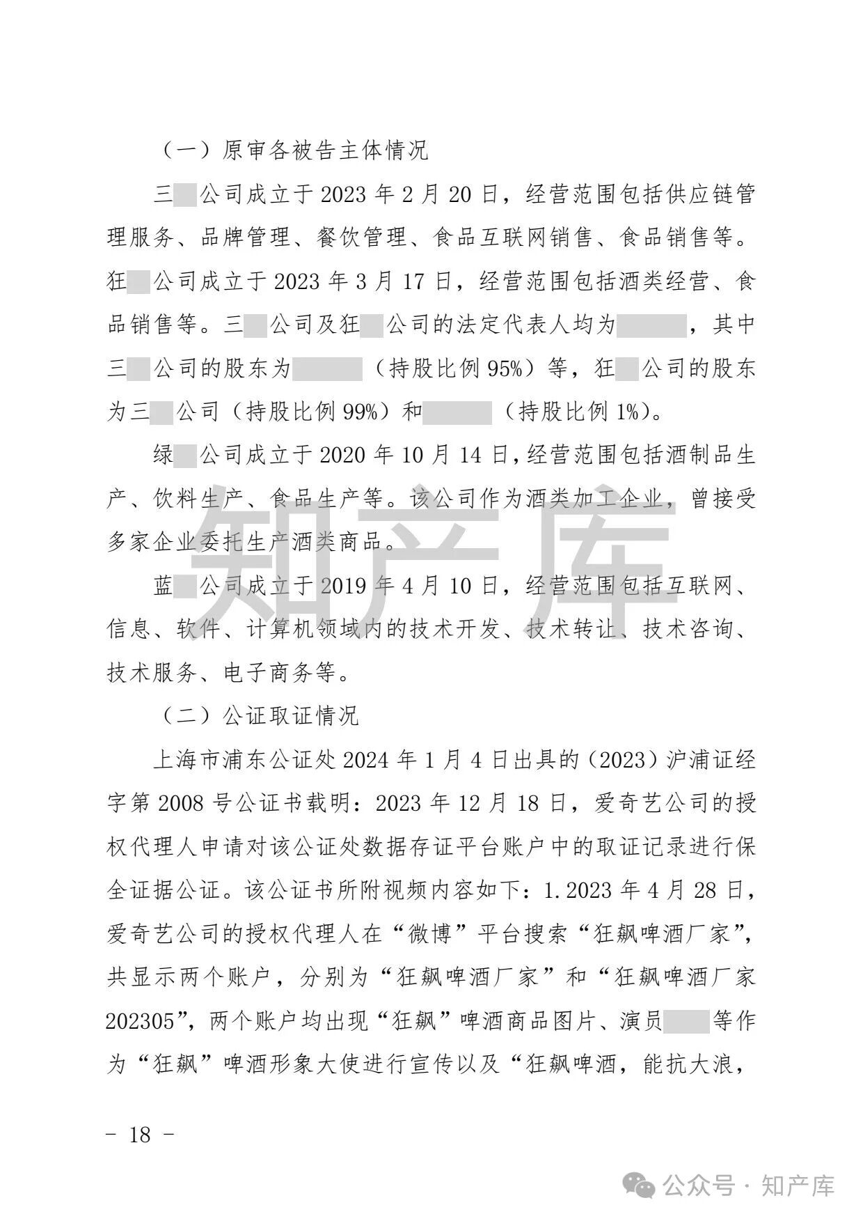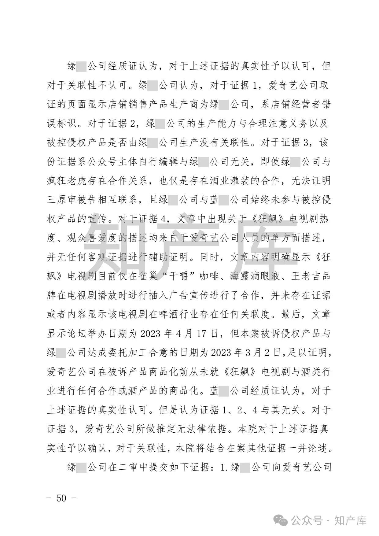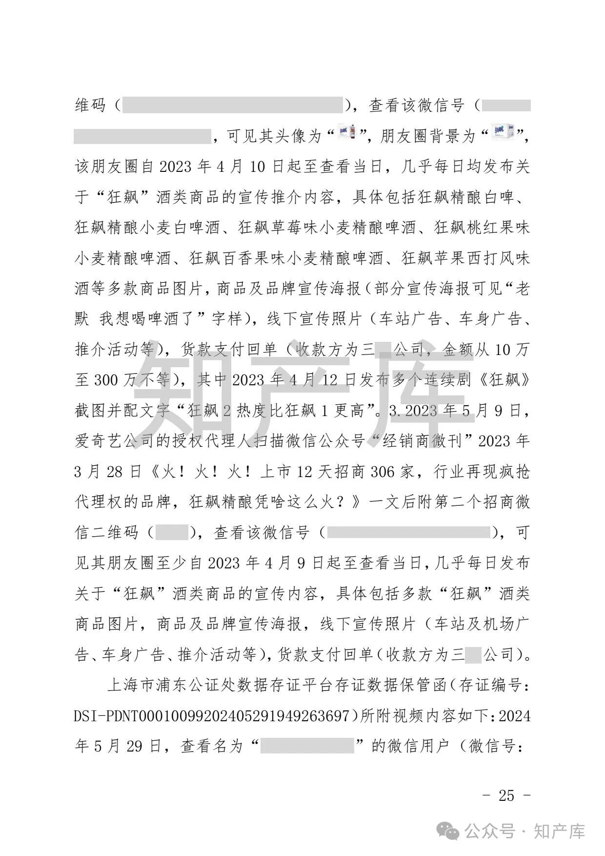 狂飙啤酒聘老默代言蹭剧被爱奇艺起诉,法院判赔500万 二审判决书