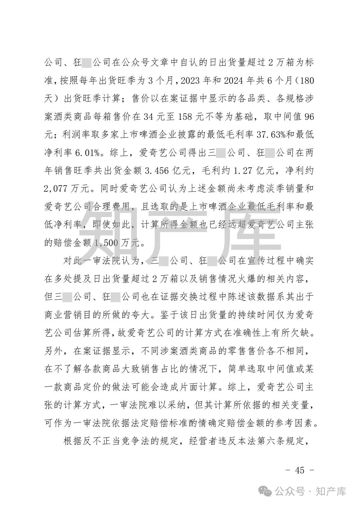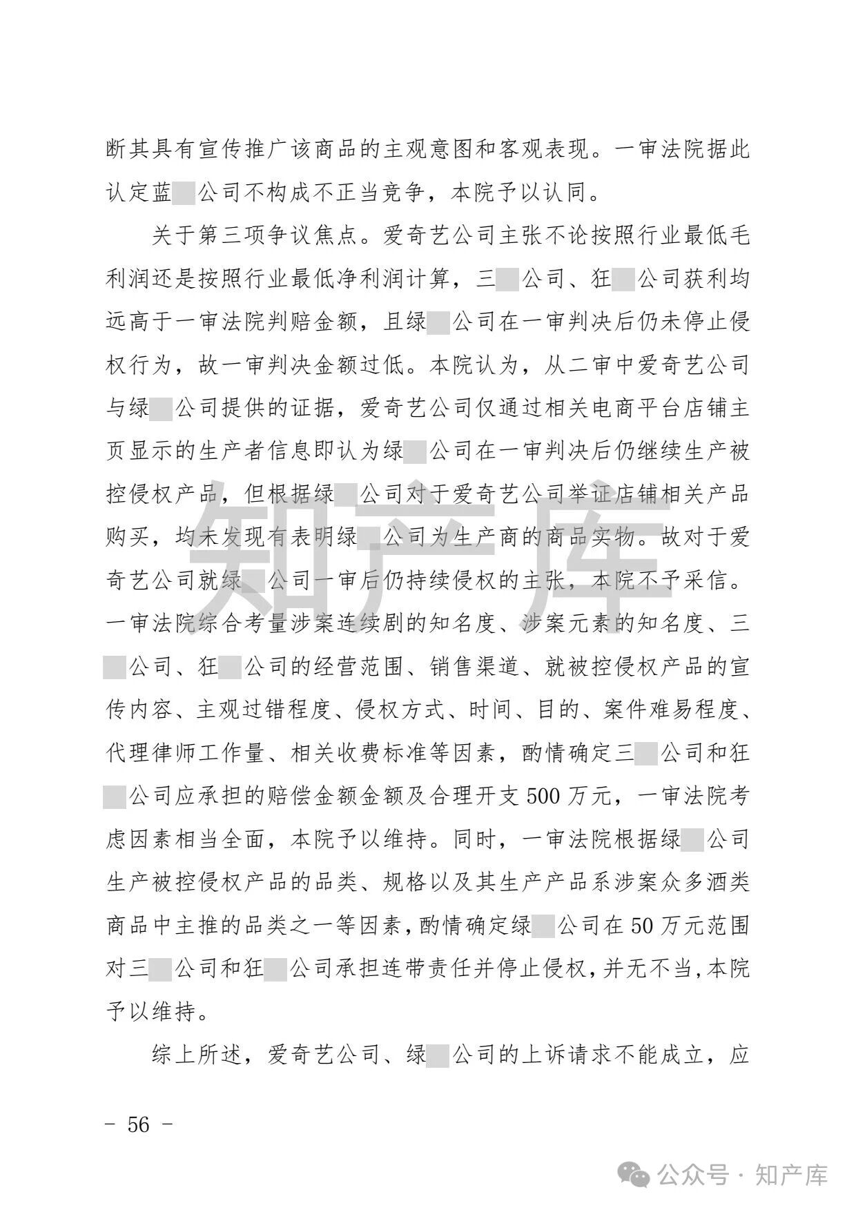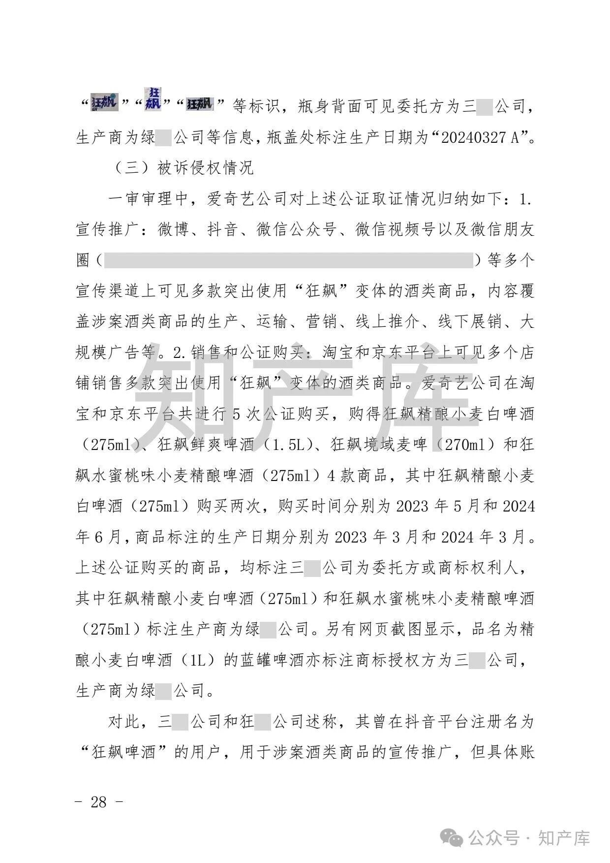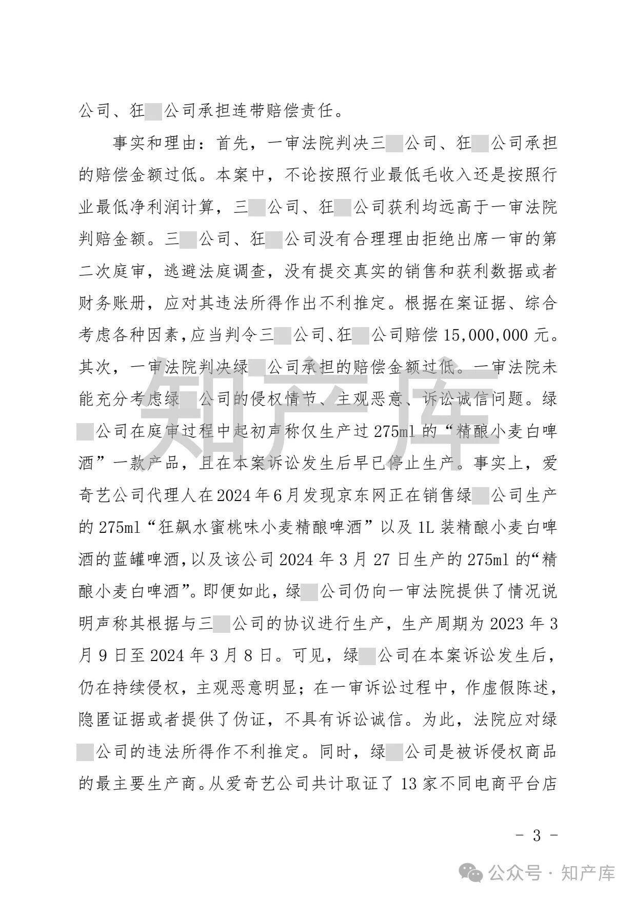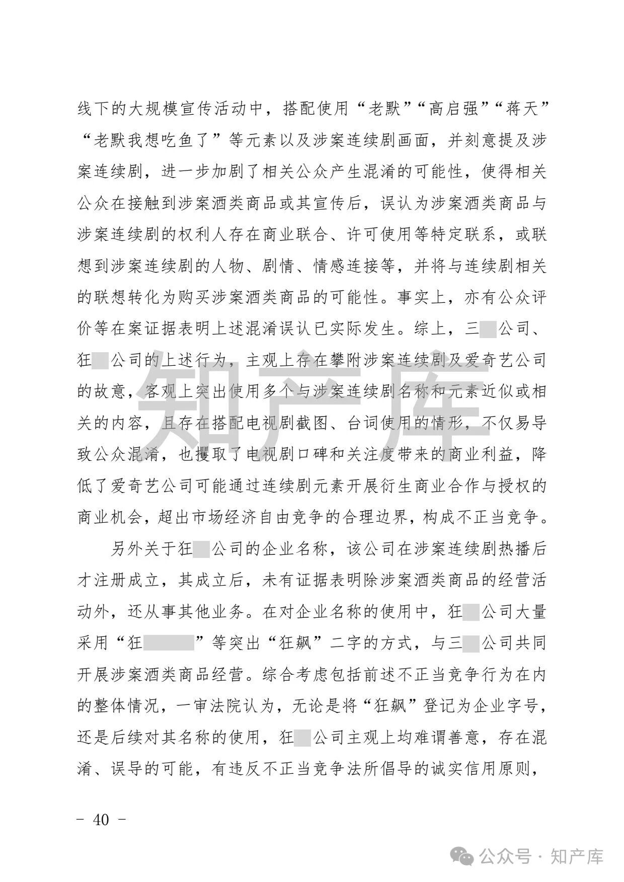 狂飙啤酒聘老默代言蹭剧被爱奇艺起诉,法院判赔500万 二审判决书