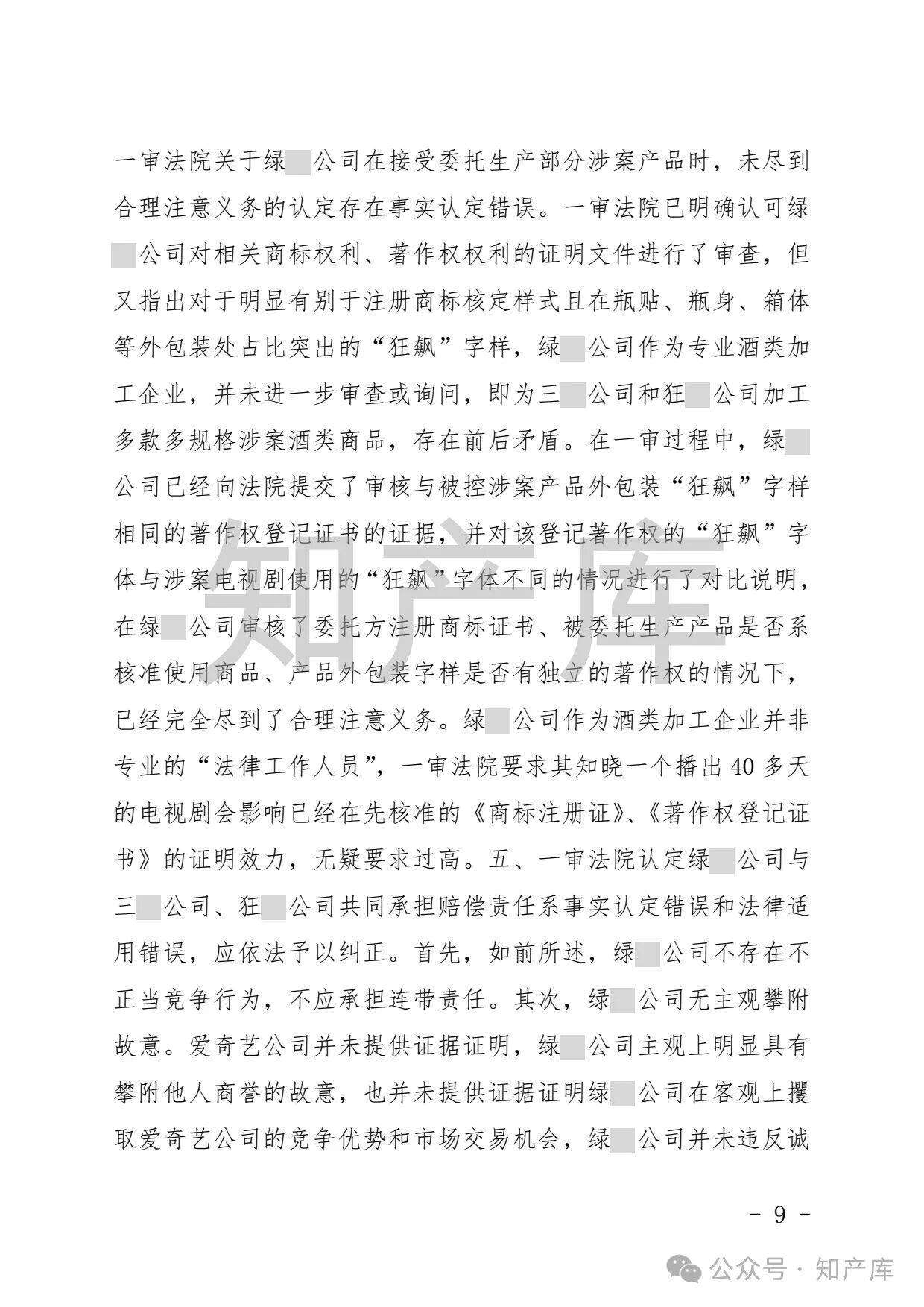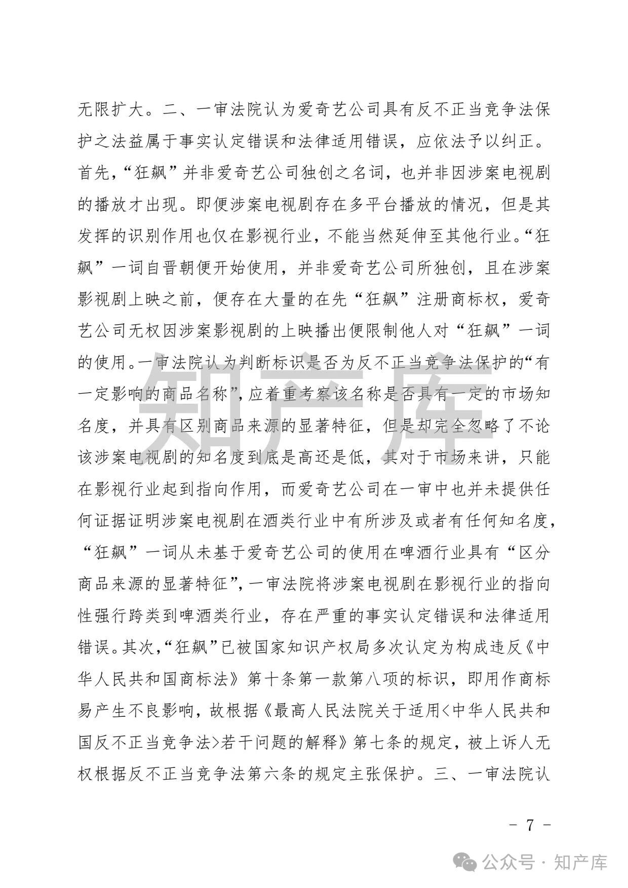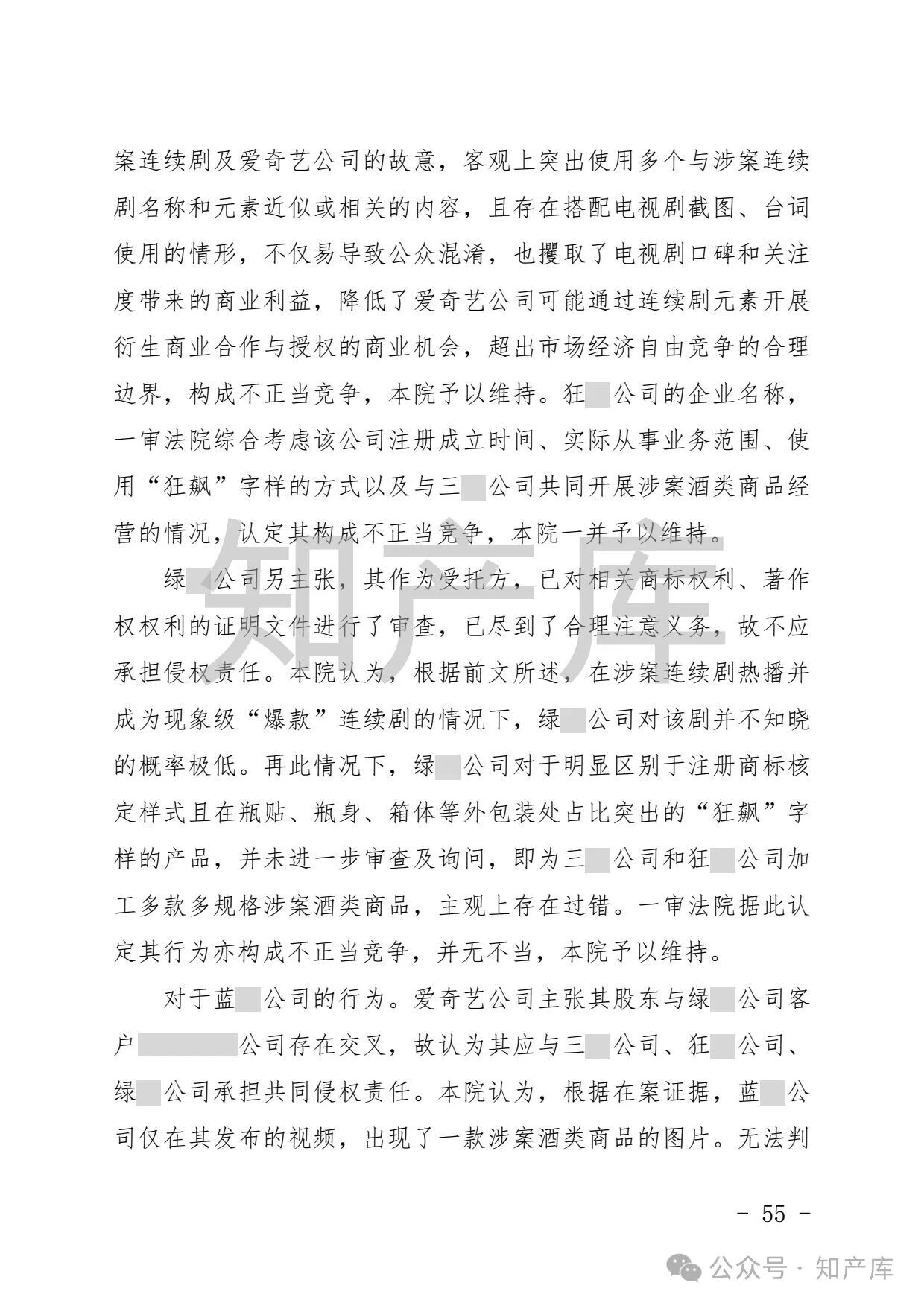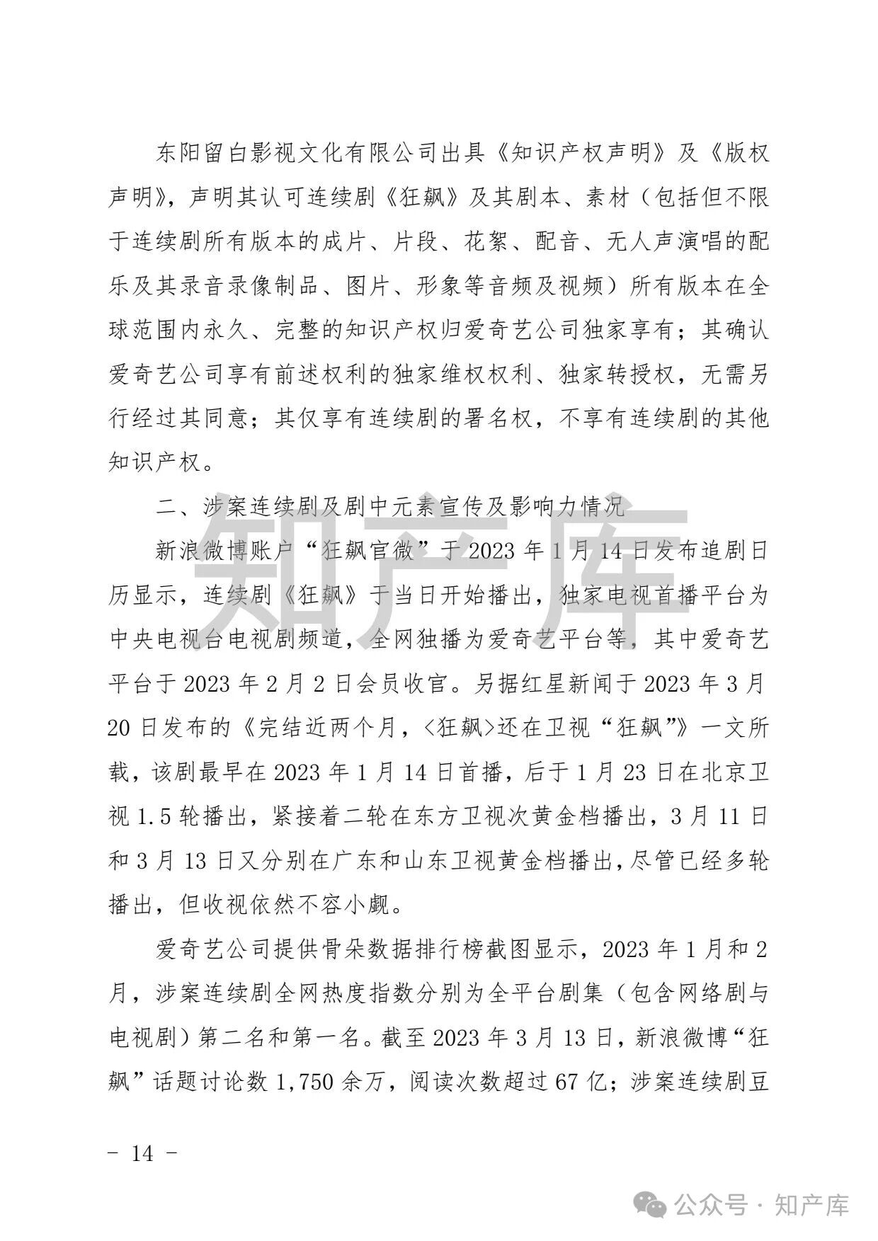 狂飙啤酒聘老默代言蹭剧被爱奇艺起诉,法院判赔500万 二审判决书
