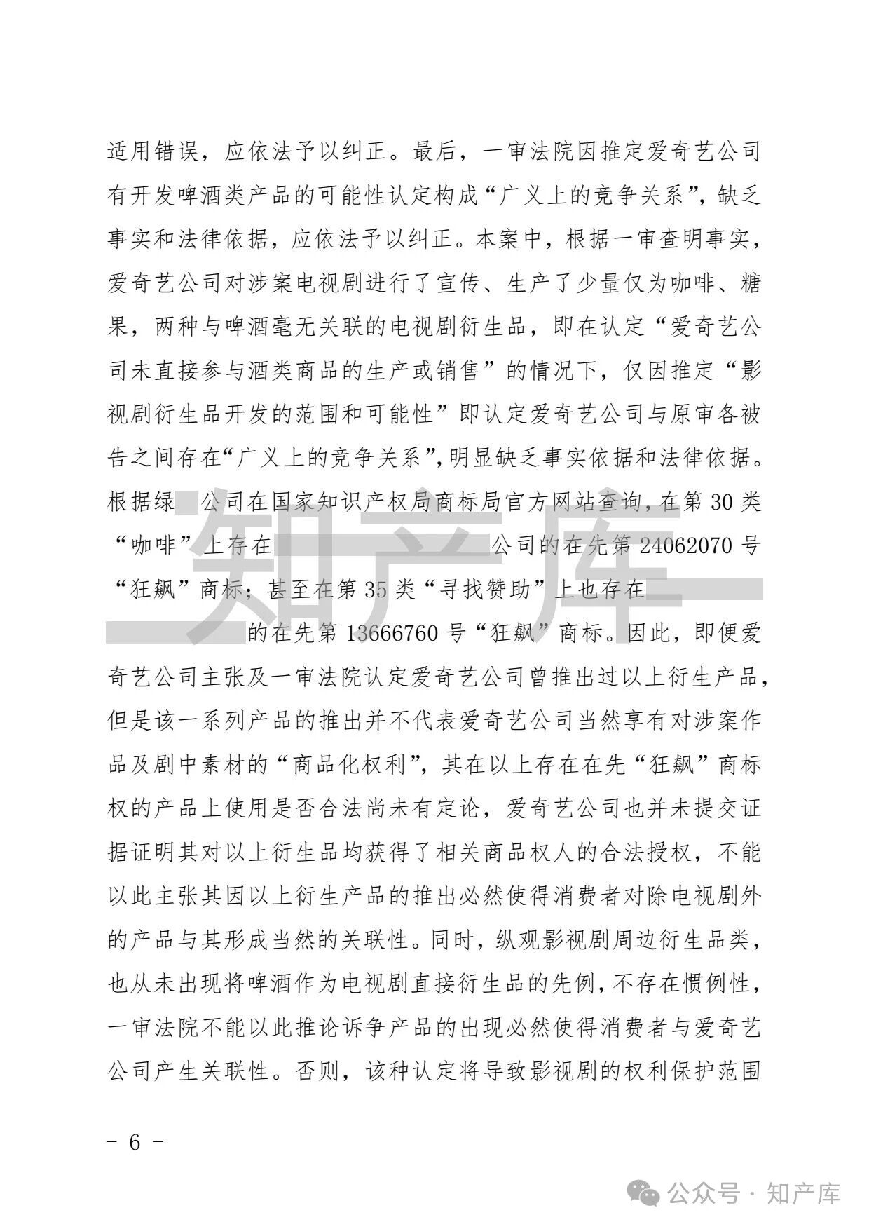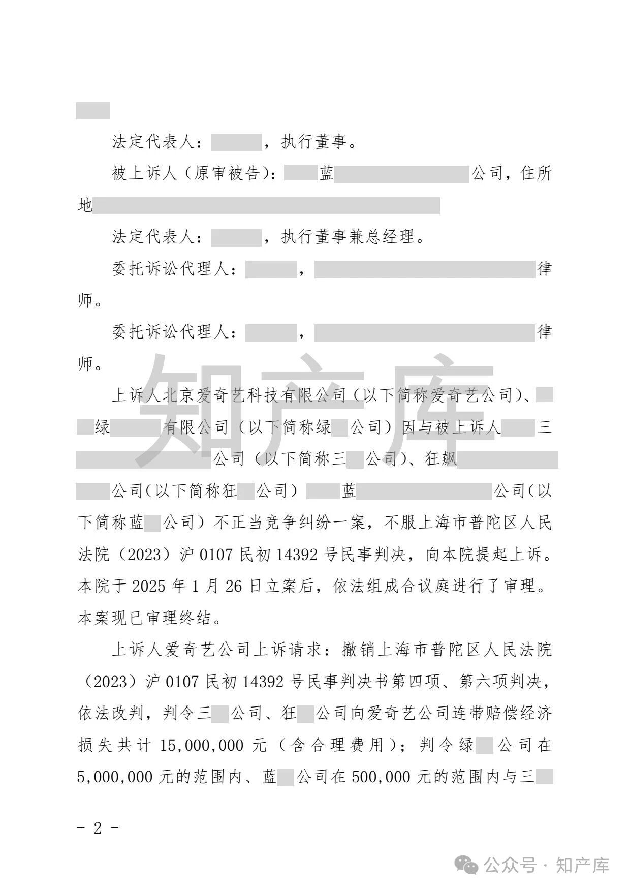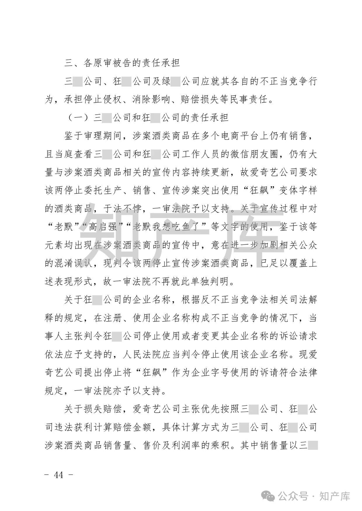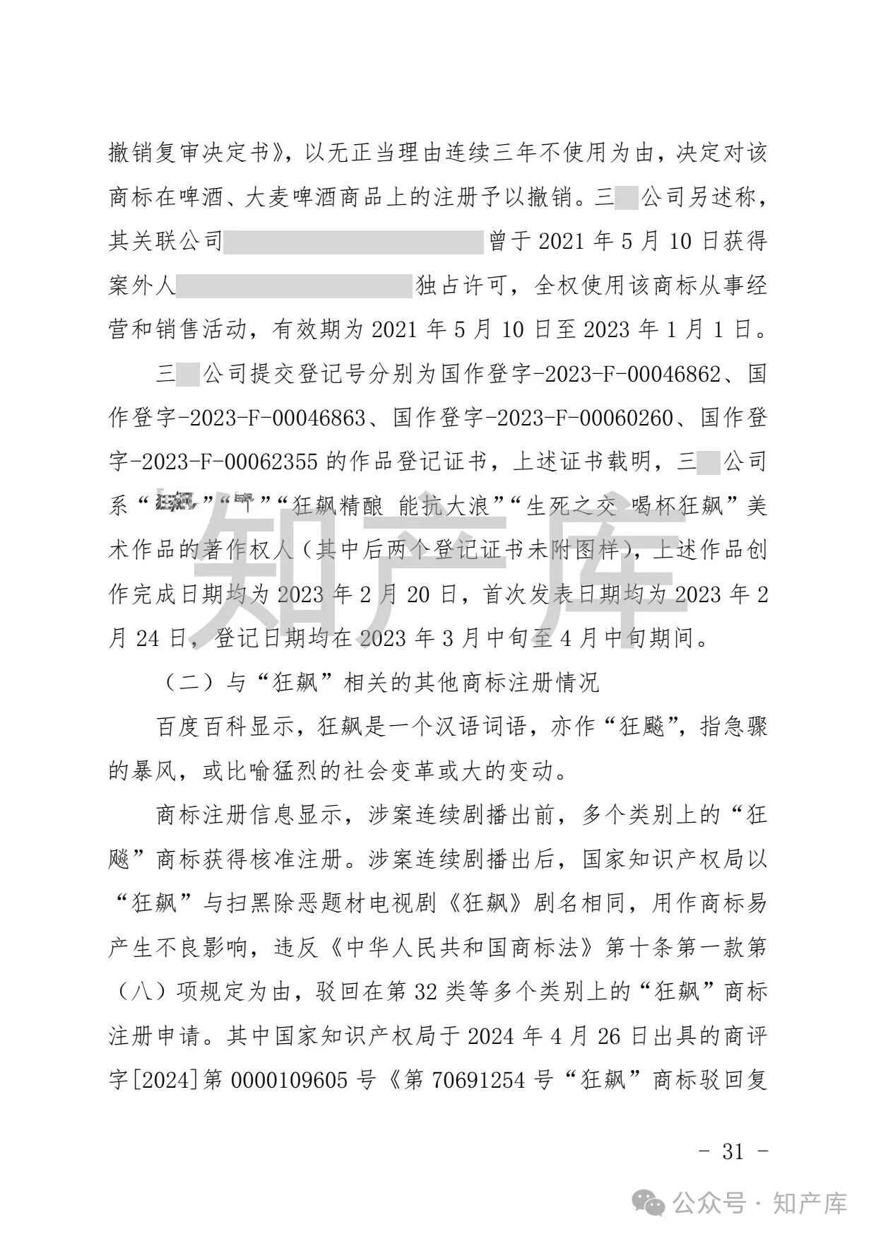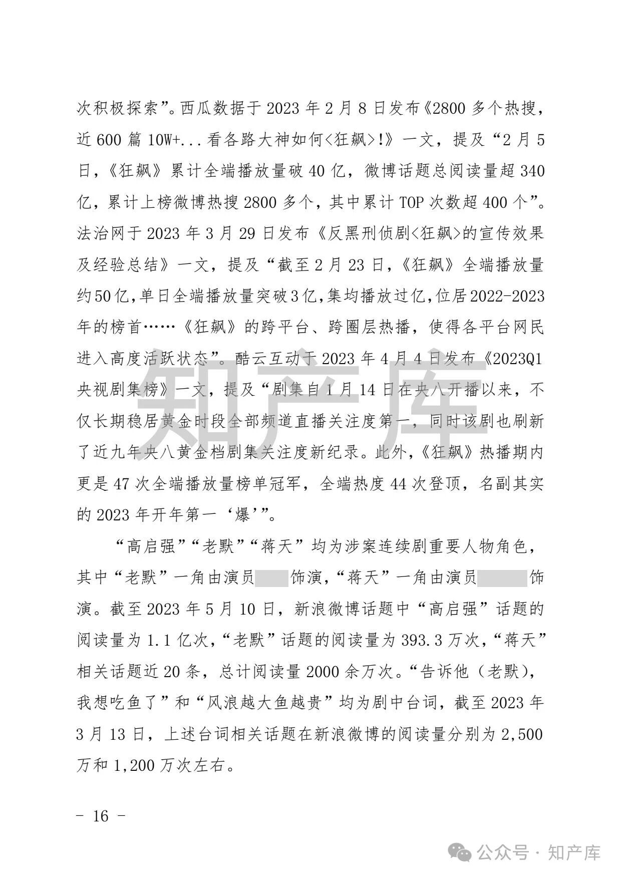 狂飙啤酒聘老默代言蹭剧被爱奇艺起诉,法院判赔500万 二审判决书