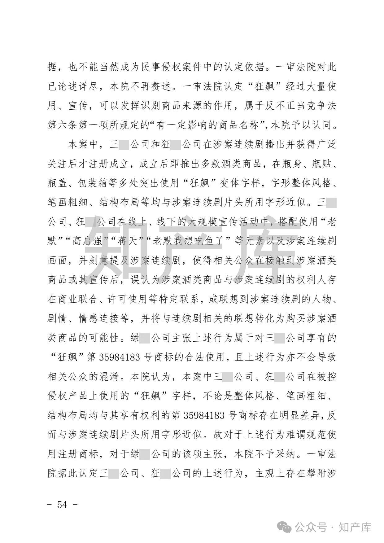 上海知识产权法院二审认定,狂飙酒业等四被告在《狂飙》电视剧热播期间,通过注册并使用与剧集名称近似的“狂飙”商标、在产品及宣传中突出使用变体“狂飙”字样、搭配“老默”“高启强”等角色元素及剧集画面、聘请剧中角色代言且未区分角色与演员等行为,存在刻意模仿与误导公众的主观故意。其核心目的是傍附爱奇艺公司因该剧累积的竞争利益,不当攫取剧集口碑、关注度带来的商业价值,同时削弱了权利人通过剧集元素开展衍生商业合作与授权的机会,超出了市场经济自由竞争的合理边界,构成不正当竞争,故维持一审关于构成不正当竞争及判赔500万元的判决。