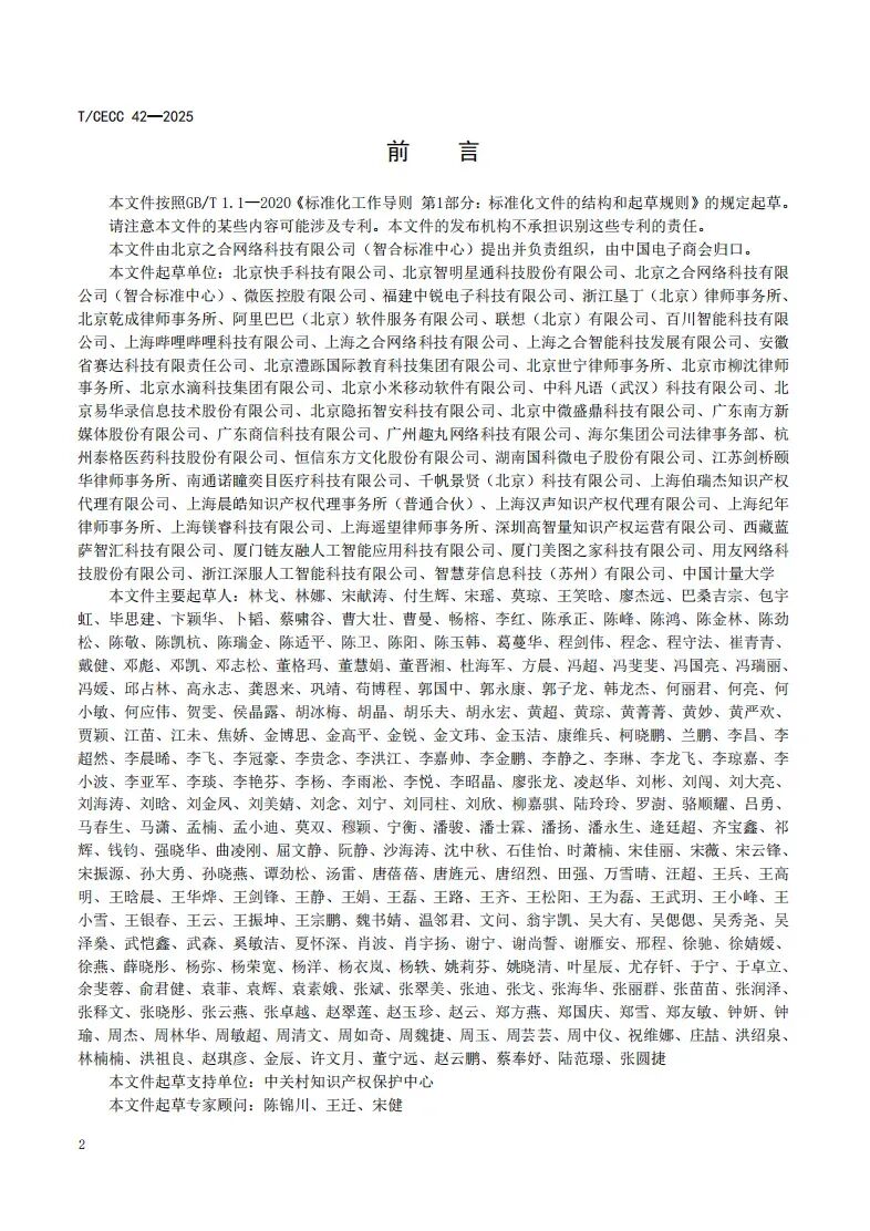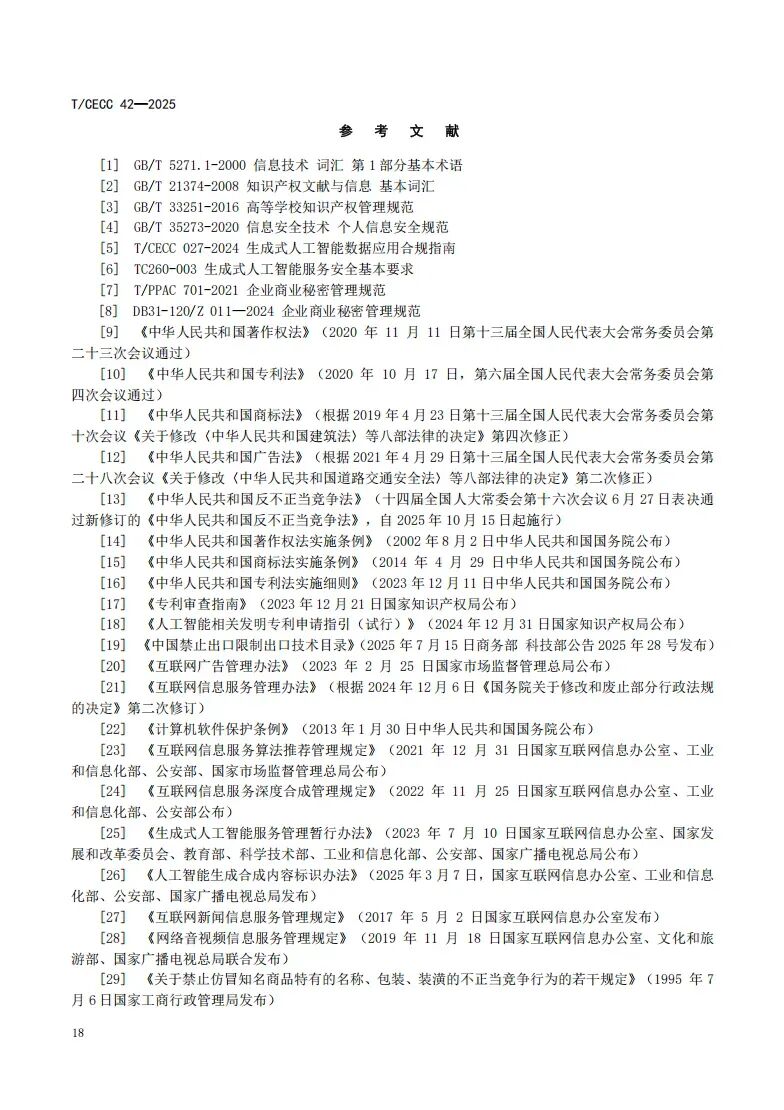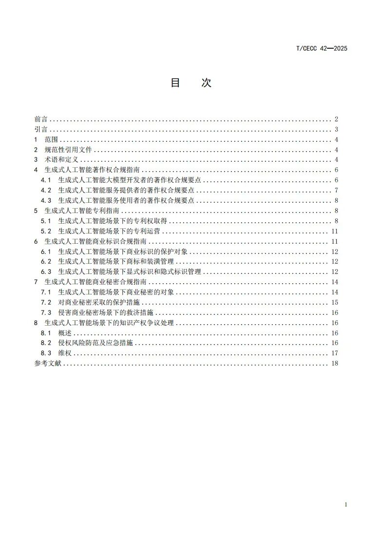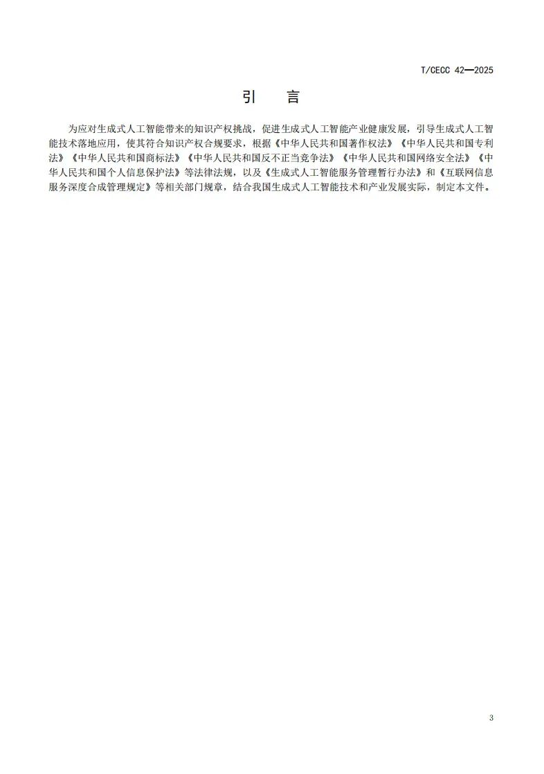 近日,中国电子商会正式发布国内首部聚焦生成式人工智能领域的知识产权团体标准——《生成式人工智能知识产权指南》(T/CECC 42-2025)(以下简称《标准》)。该《标准》作为“标准化+市场监管”团体标准典型案例在海淀区第56届“世界标准日”主题活动暨第四届标准创新大会上进行展示。