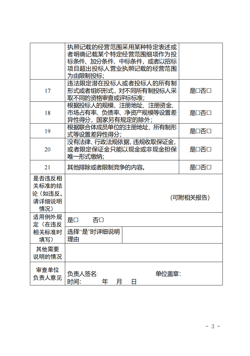 附件1. 浙江省招标投标领域政策措施公平竞争审查表