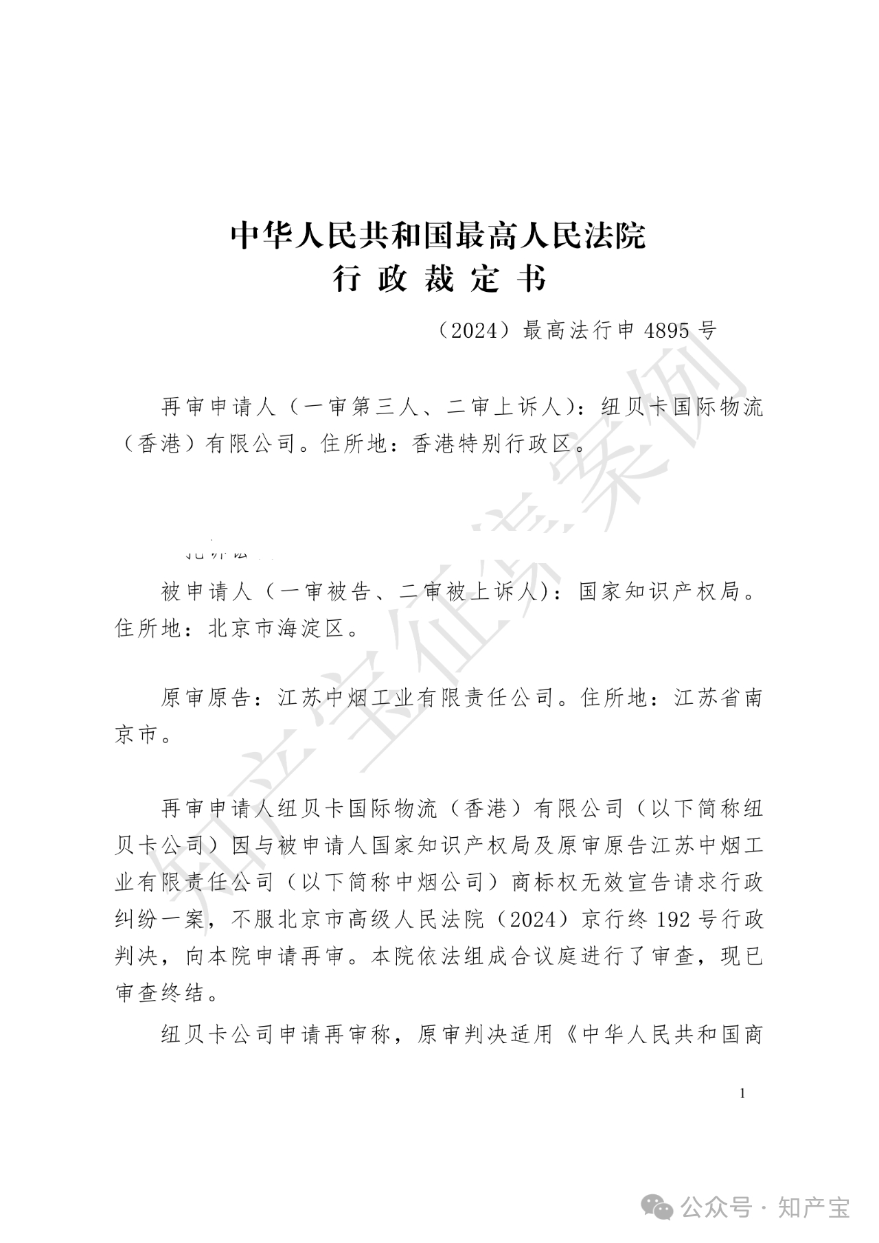 纽贝卡与国家知识产权局、江苏中烟工业有限责任公司