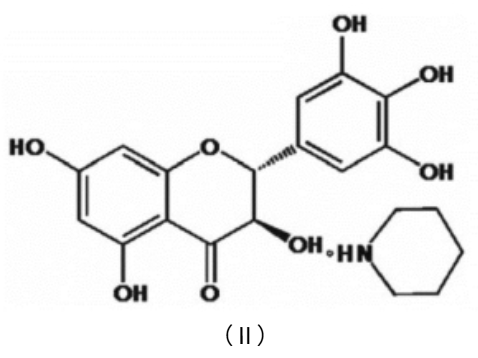 涉案专利申请的权利要求1请求?;ひ恢侄庋蠲匪厮那膺量└春衔?#xff0c;其特征在于,所述的二氢杨梅素四氢吡咯复合物的分子式(见图 I)所示(下称 DHMP)。