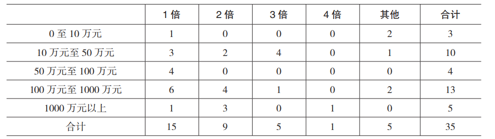 表2 惩罚性赔偿中支持倍数与判赔金额分布情况