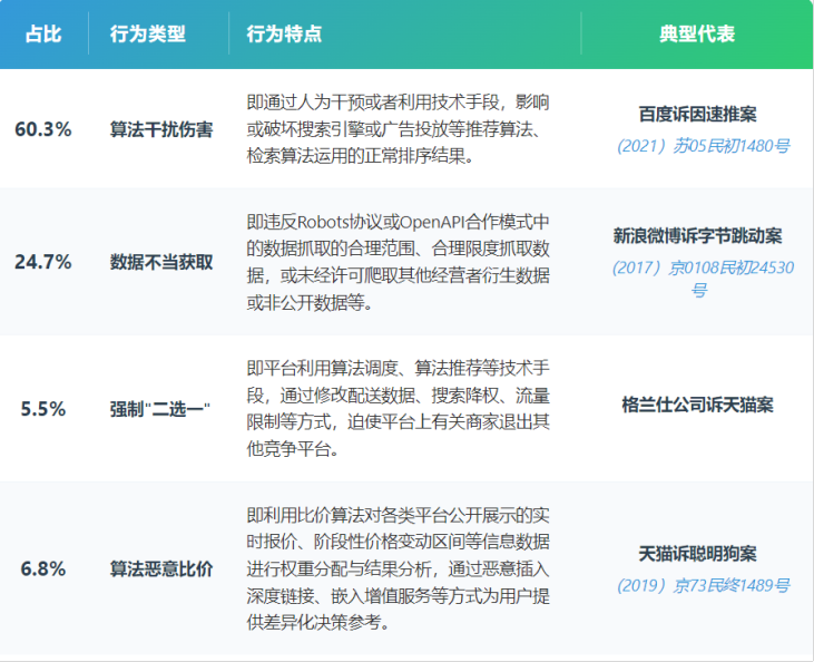 图3:涉数字平台算法不正当竞争纠纷各类行为认定比例