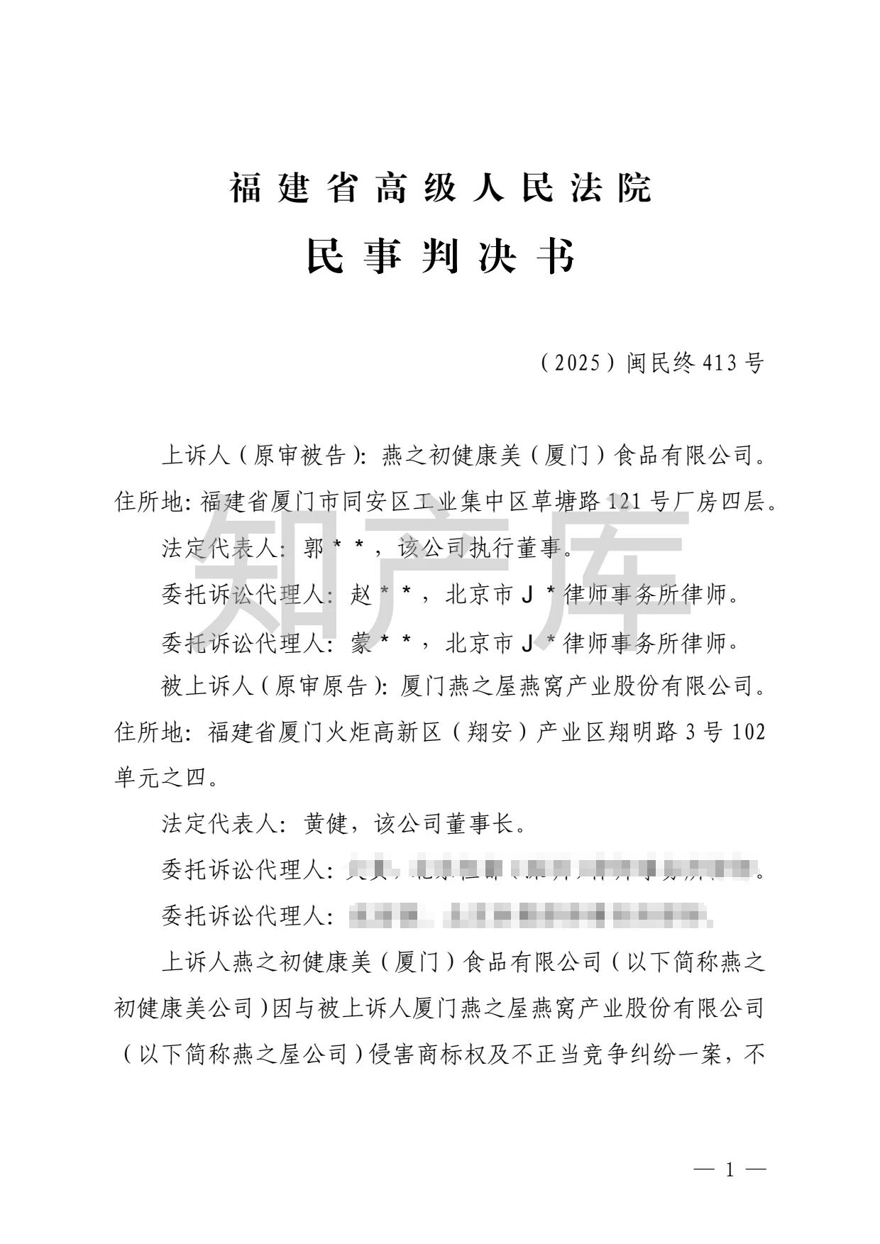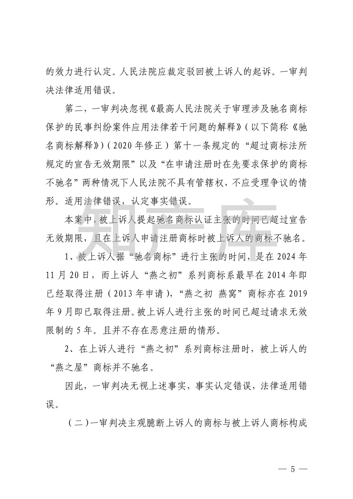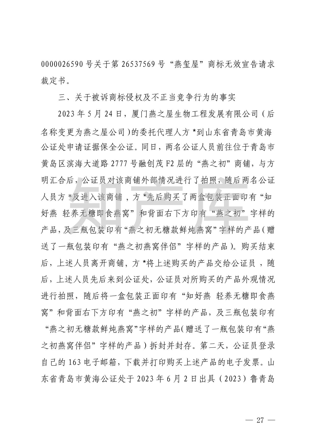 燕之屋vs燕之初商标纠纷,法院判赔1000万 二审判决书全文