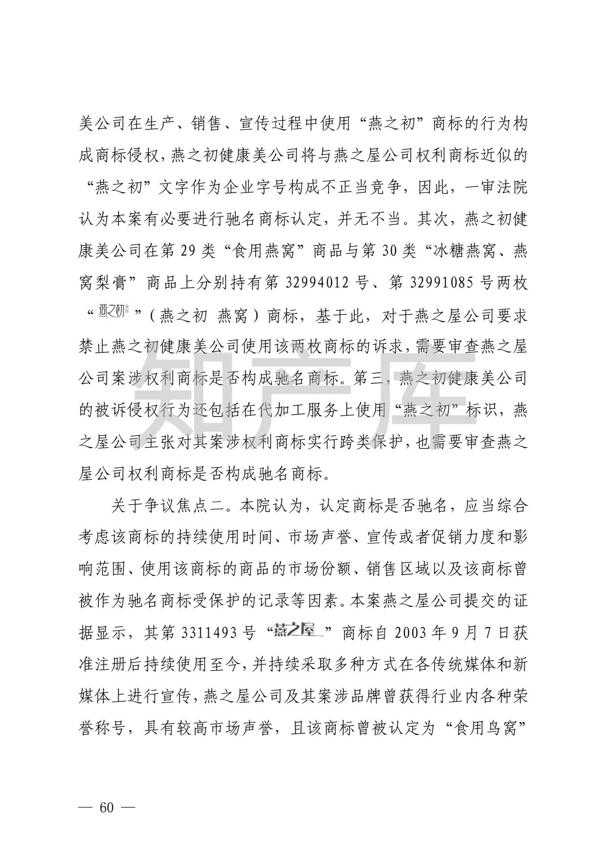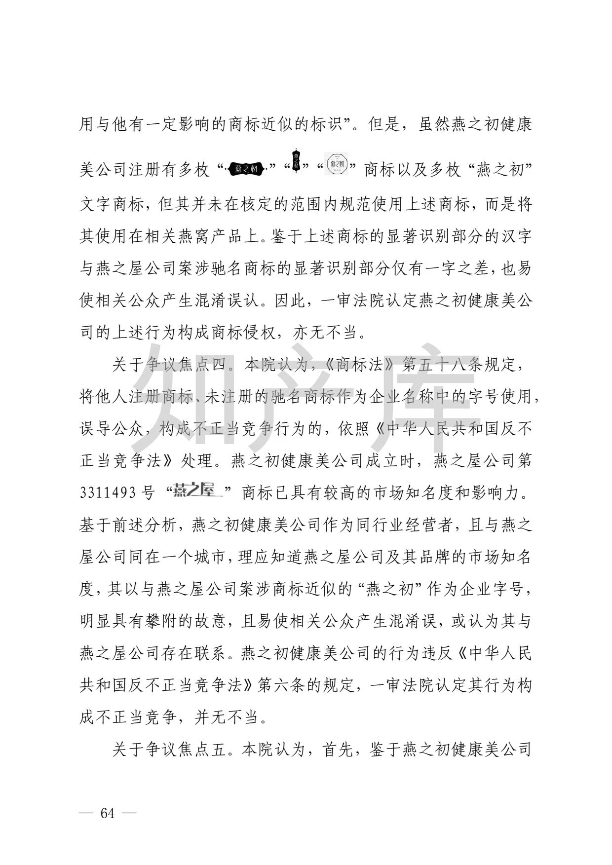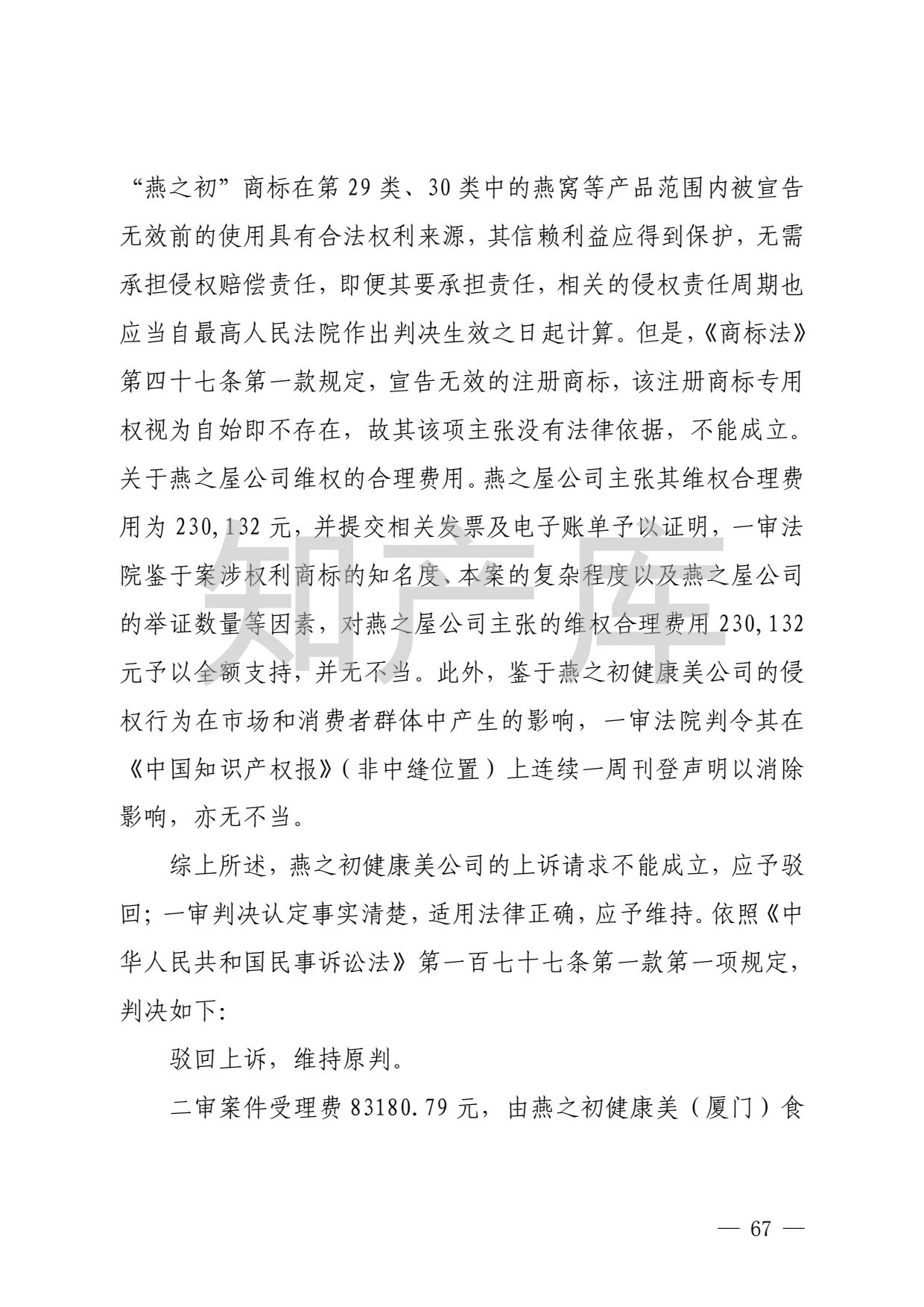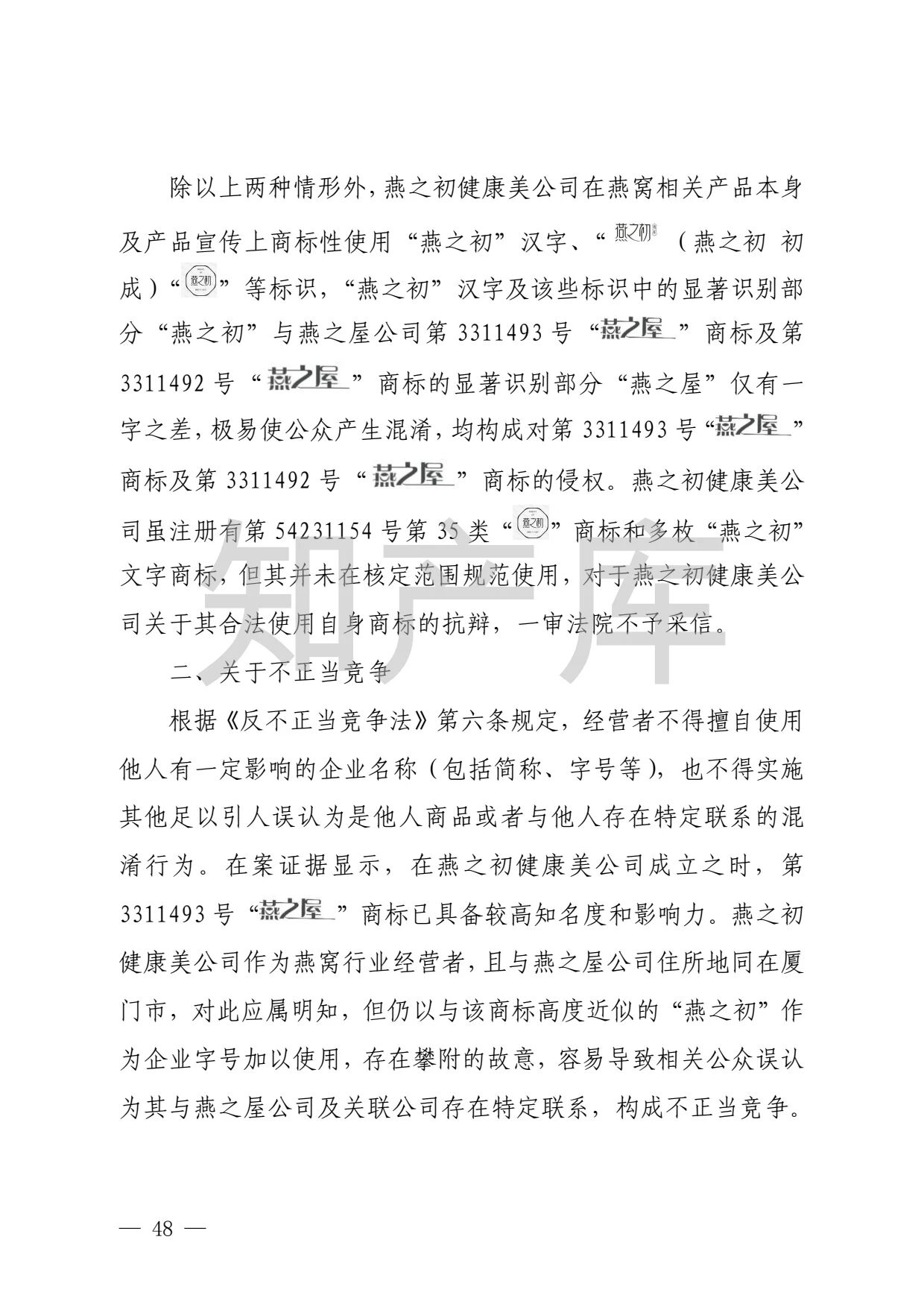 “燕之窝”侵犯“燕之屋”商标权案二审判决书