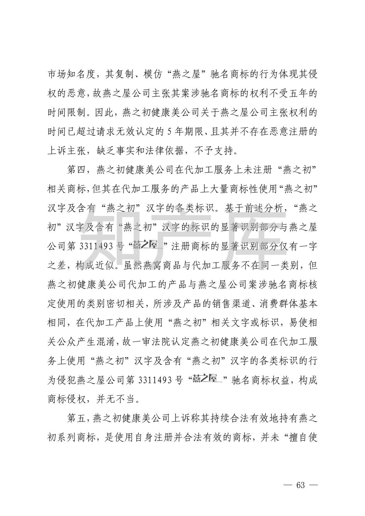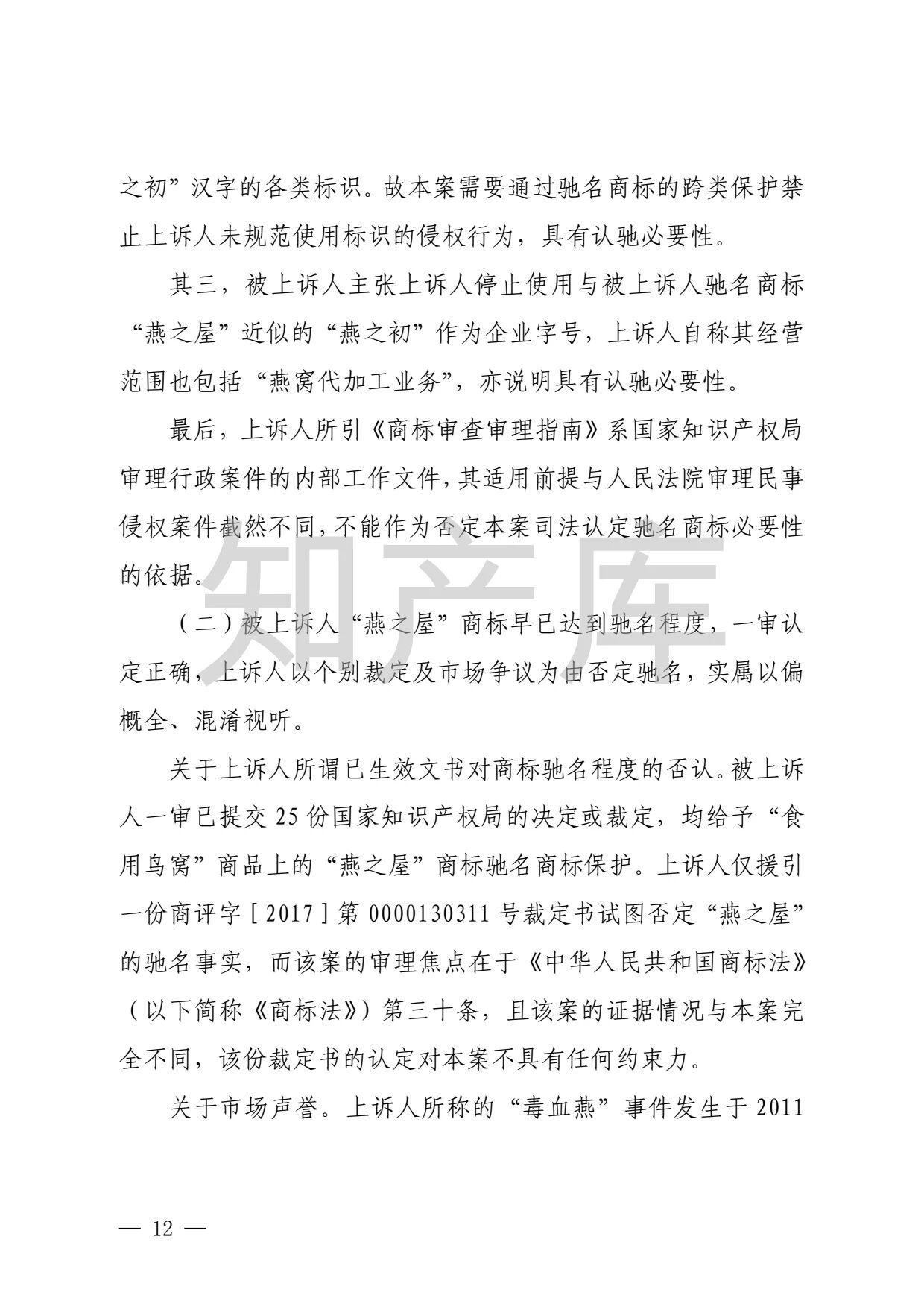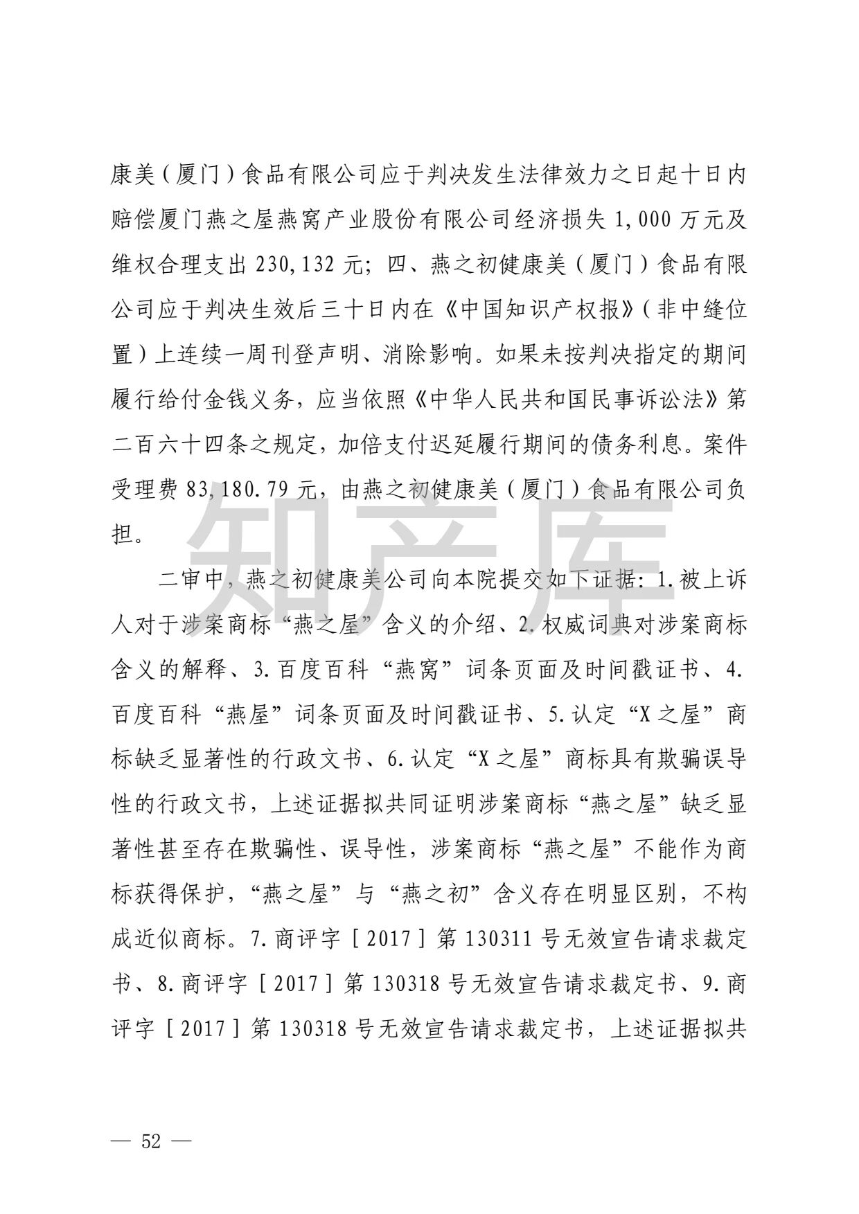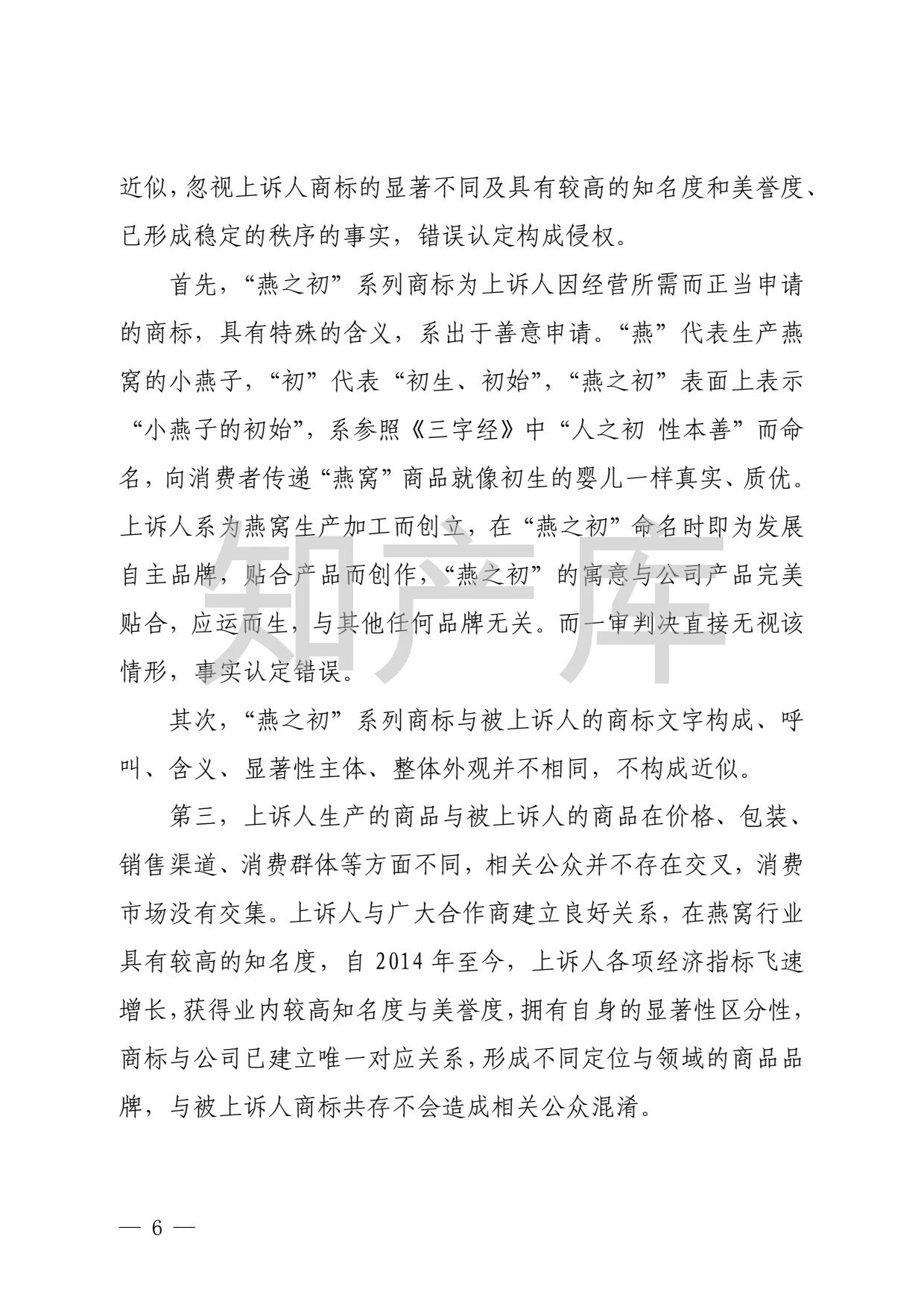 “燕之窝”侵犯“燕之屋”商标权案二审判决书