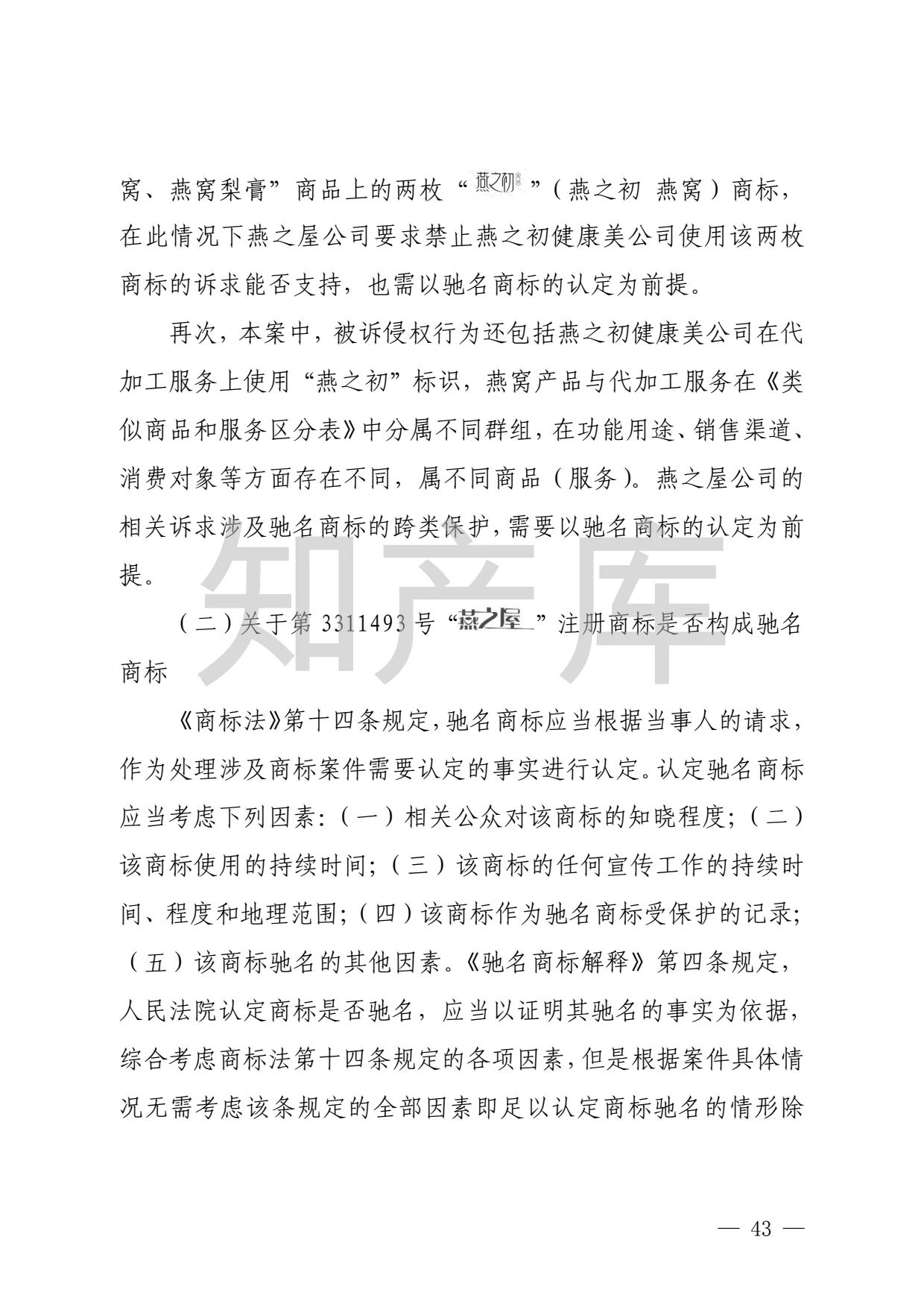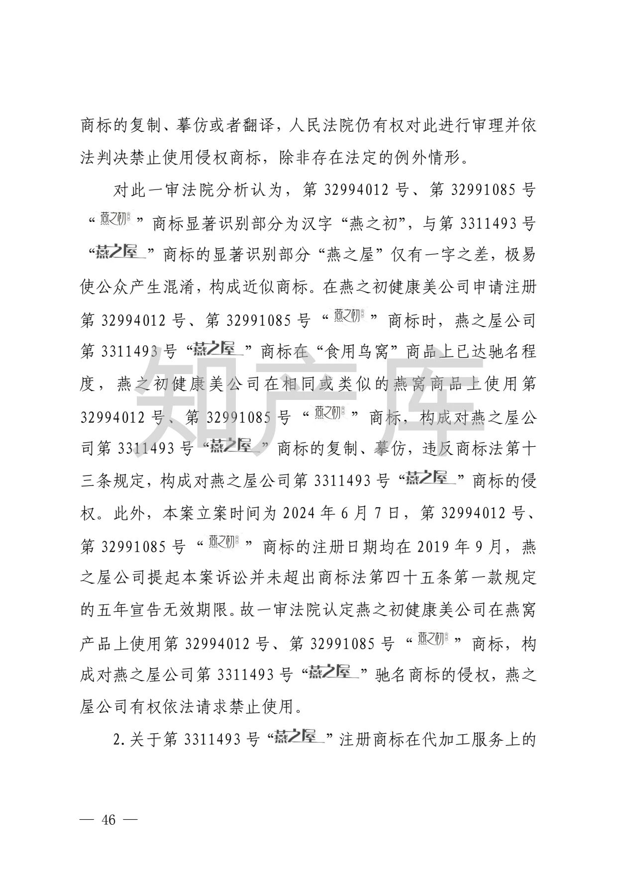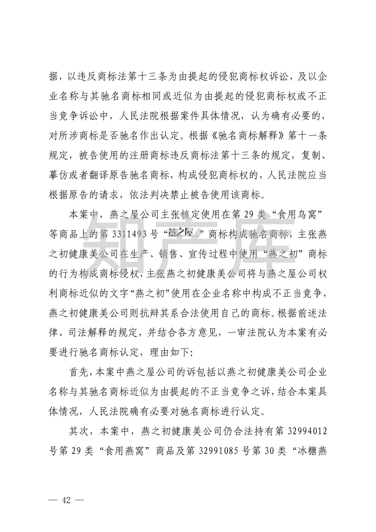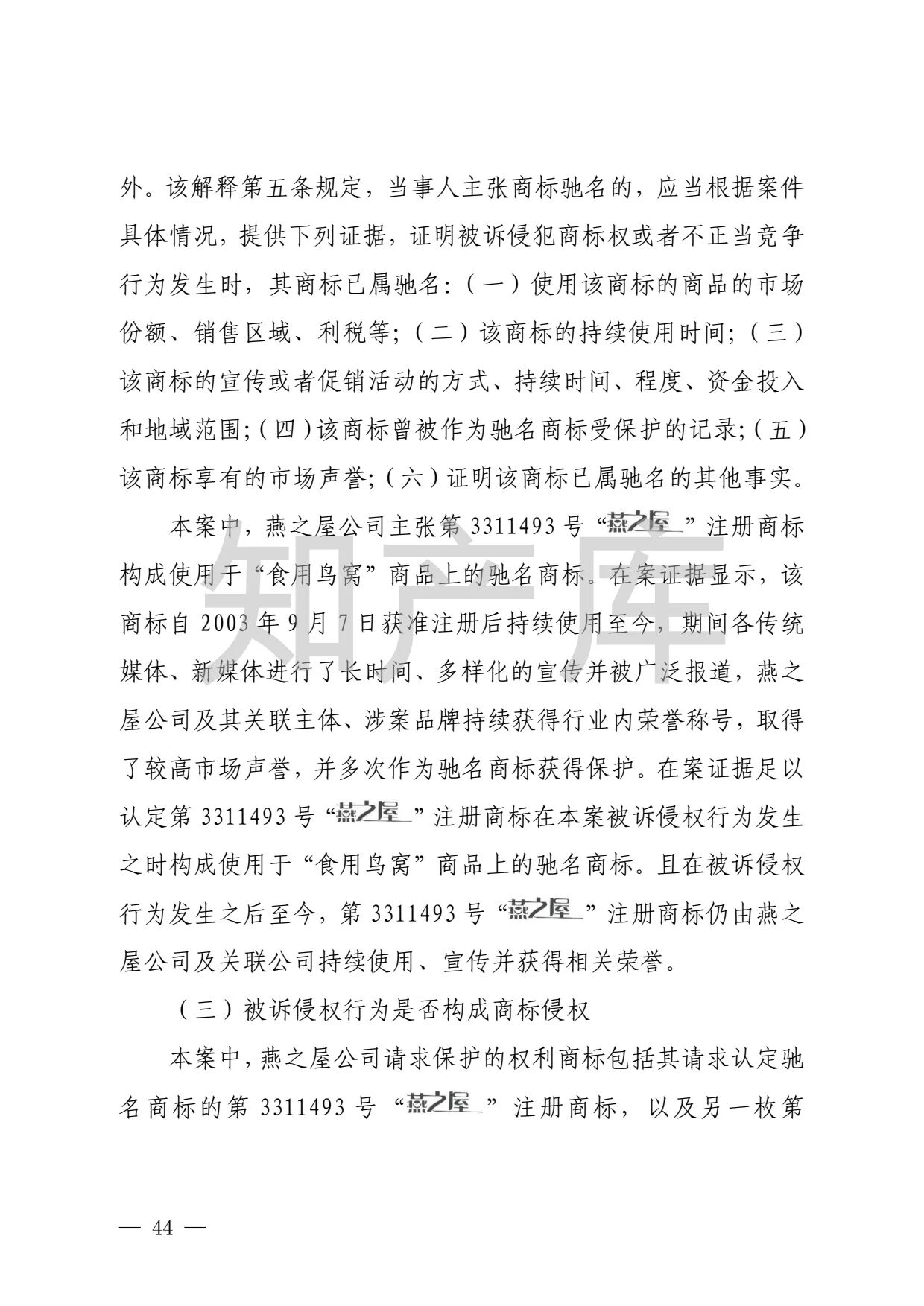 “燕之窝”侵犯“燕之屋”商标权案二审判决书