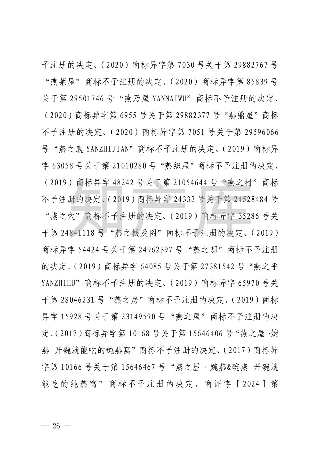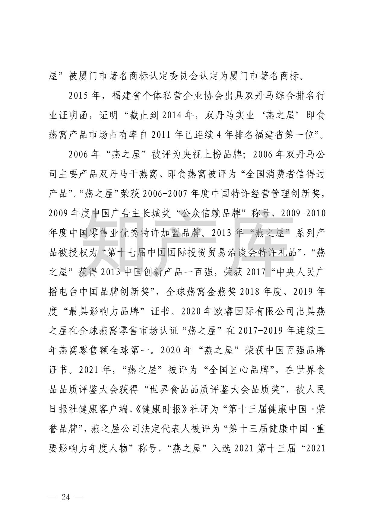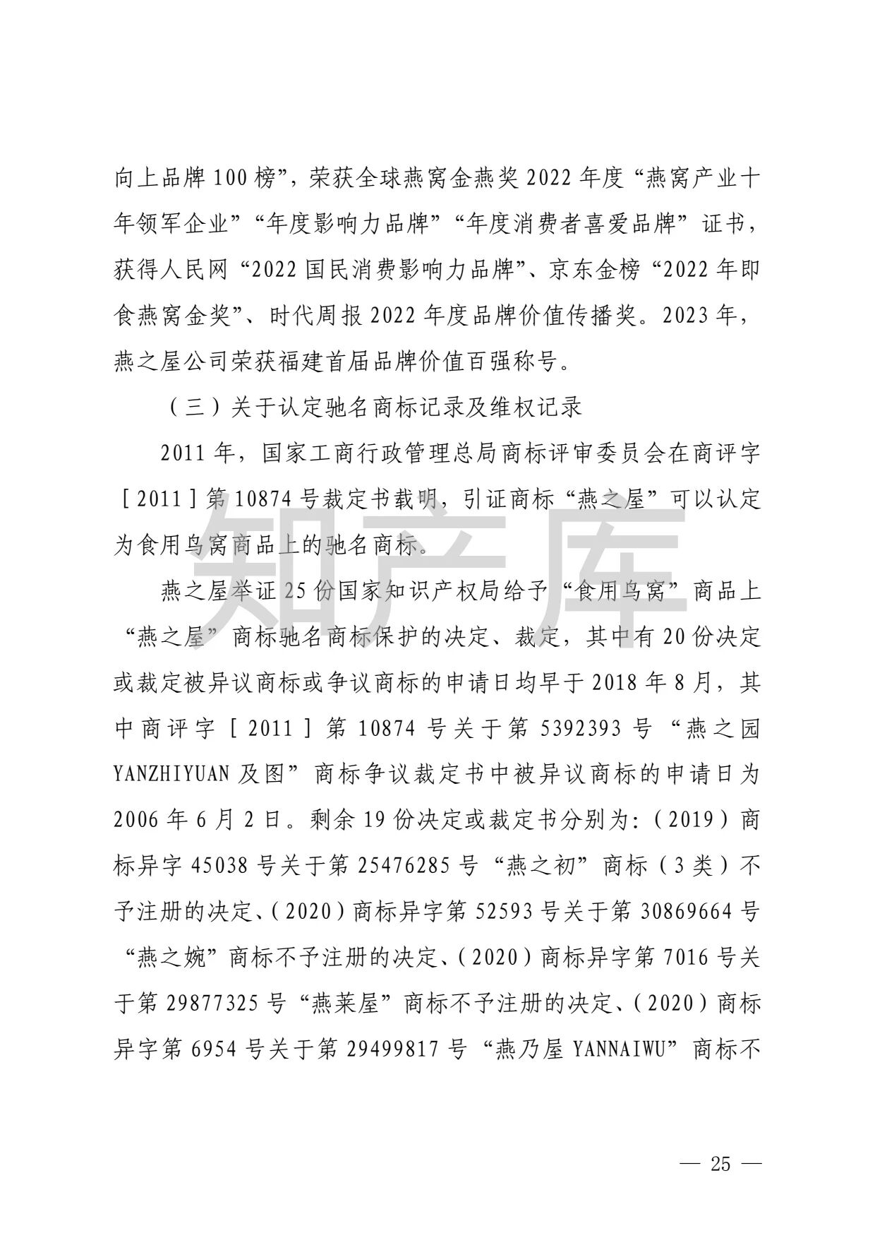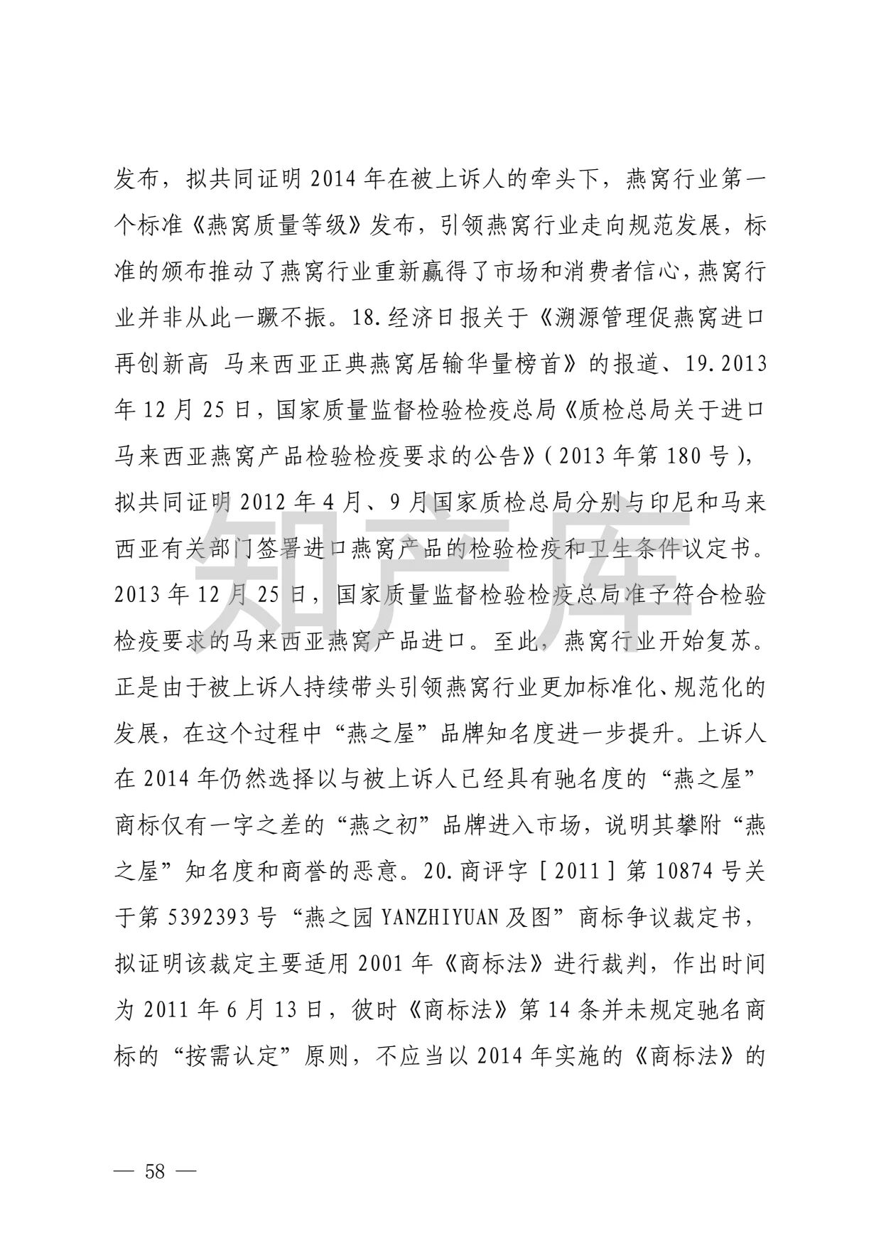 “燕之窝”侵犯“燕之屋”商标权案二审判决书