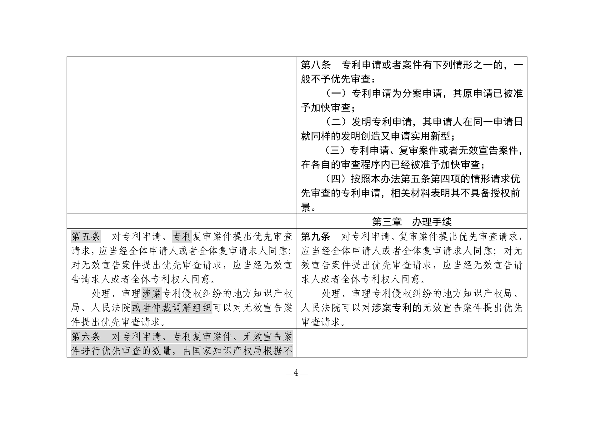 《专利优先审查管理办法修改草案(征求意见稿)》修改对照表