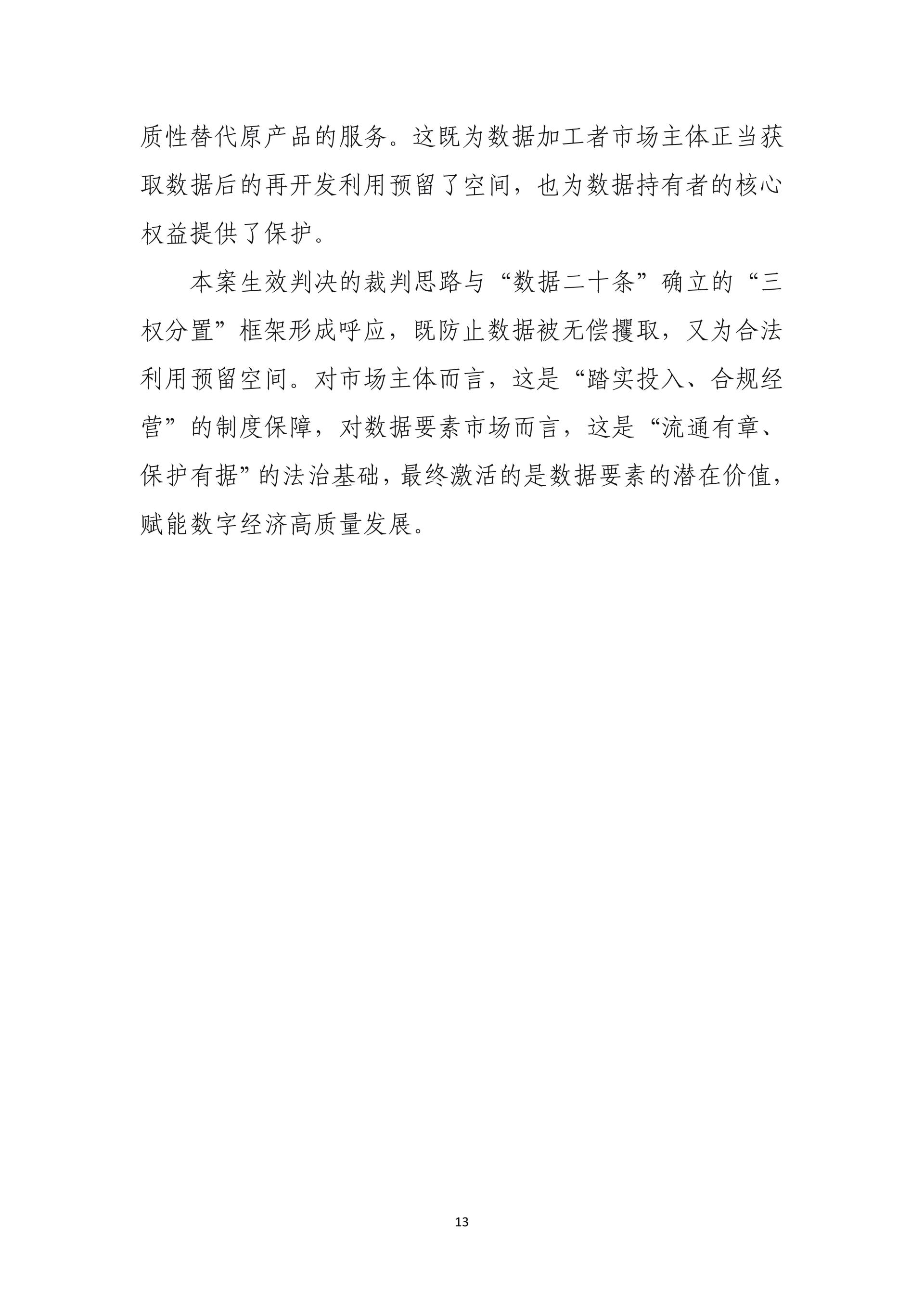 在护航科技自立自强、服务高质量发展方面,通过水泥协会组织垄断系列案、变身漫画特效案、拥堵延时指数案、锌电解污染治理装备案等,明晰行业竞争边界,填补人工智能与数据保护规则空白,激发产学研协同创新活力。